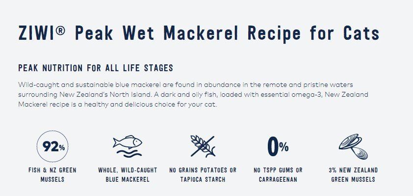 Ziwi Peak Mackerel Recipe is formulated to meet the nutritional levels established by the AAFCO Cat Food Nutrient Profiles for All Life Stages.