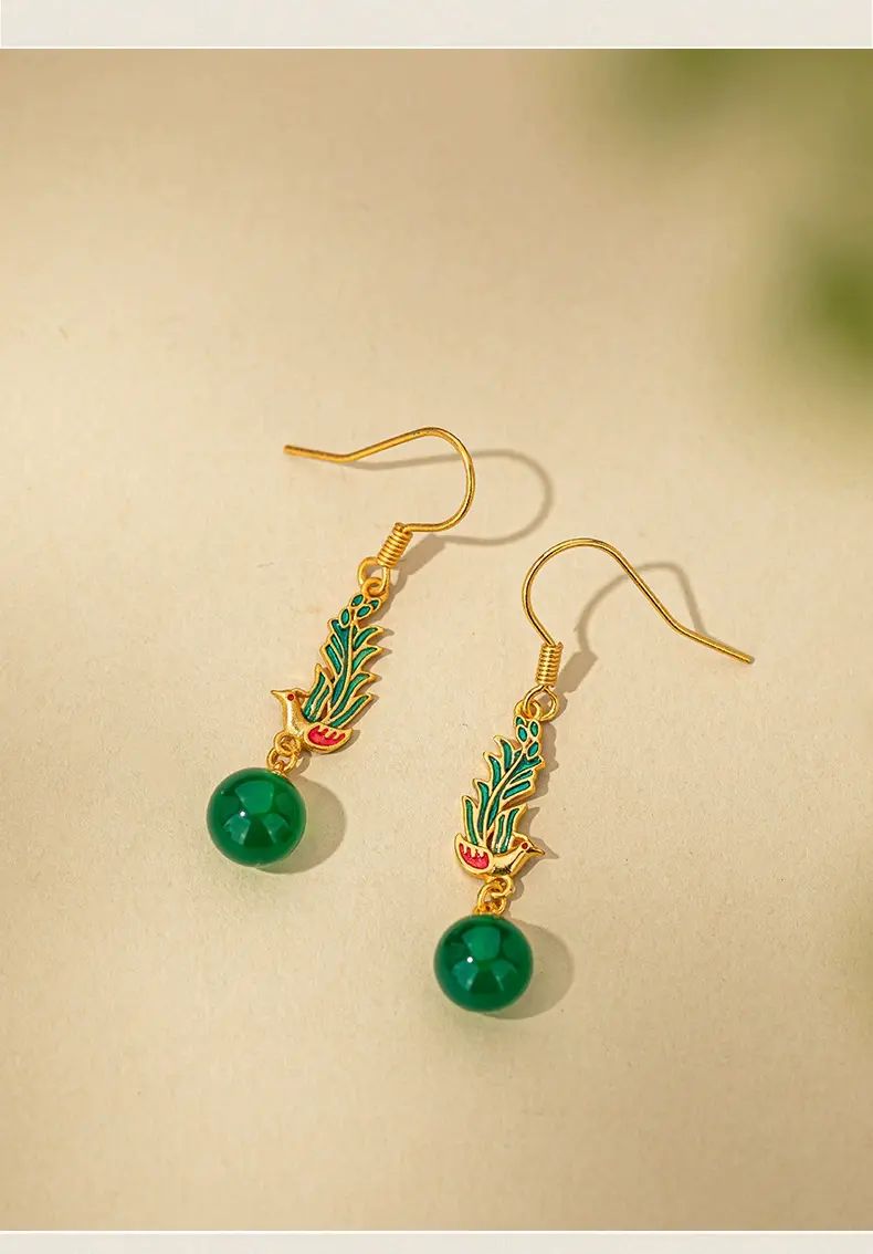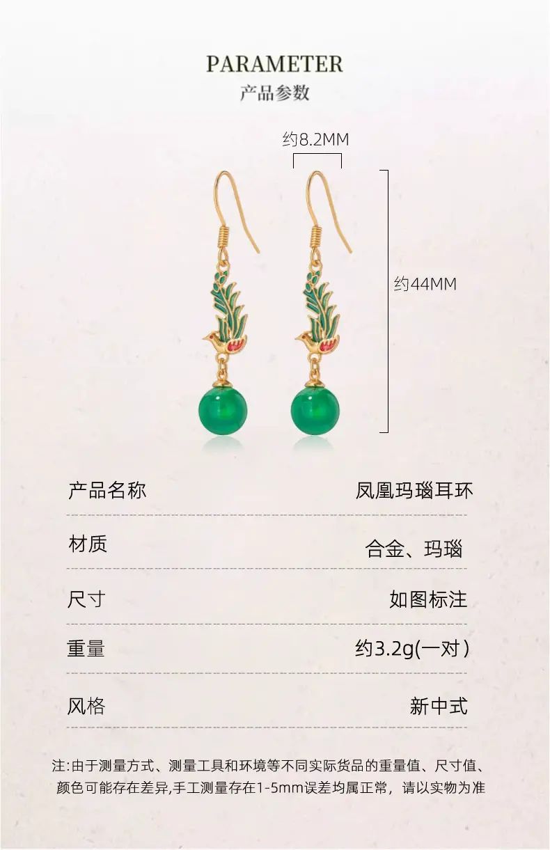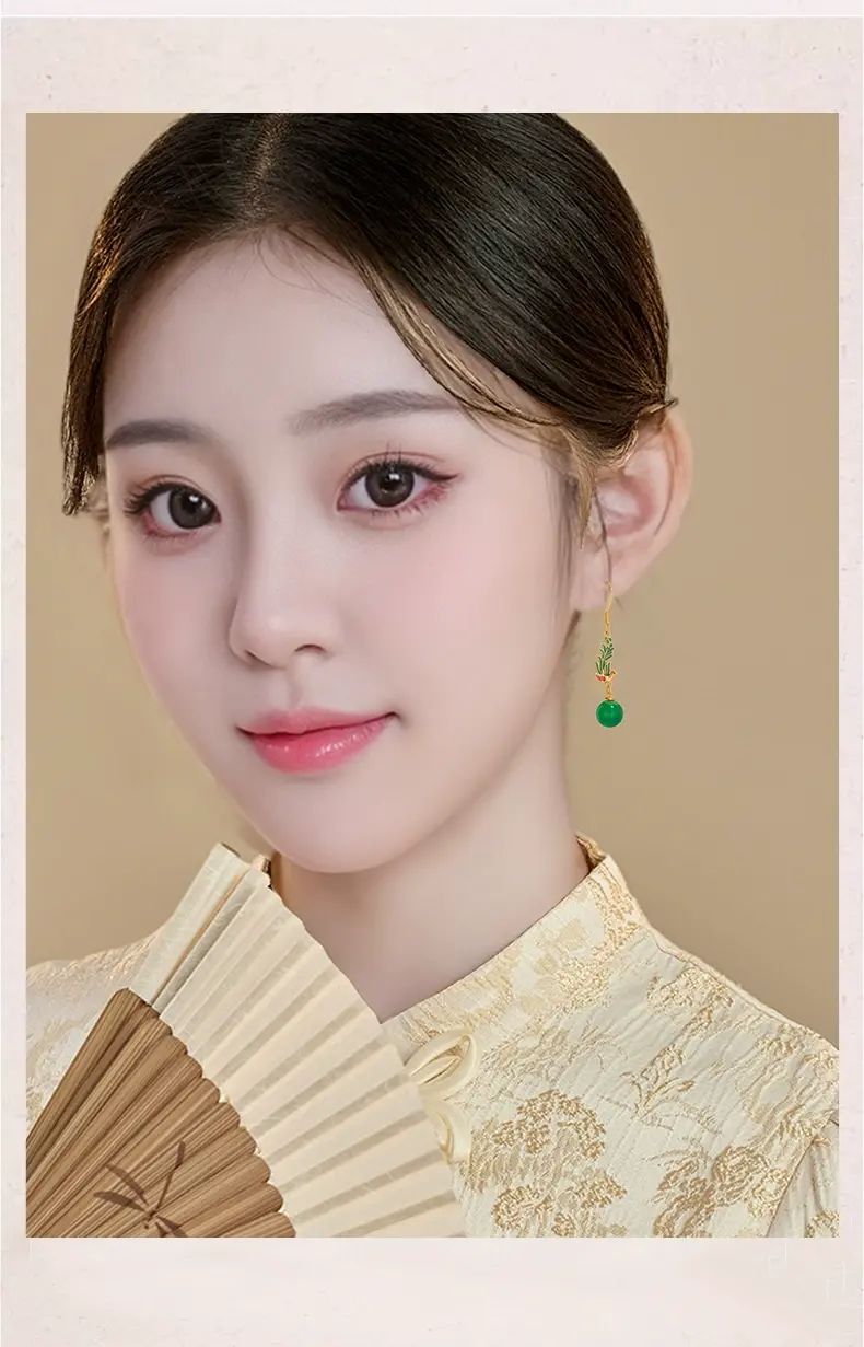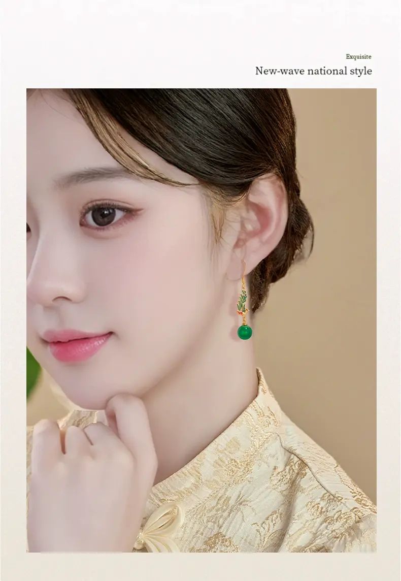 | Description | 古风新中式玛瑙耳环2025新款爆款高级感设计气质耳饰女耳坠配饰;绿色 |