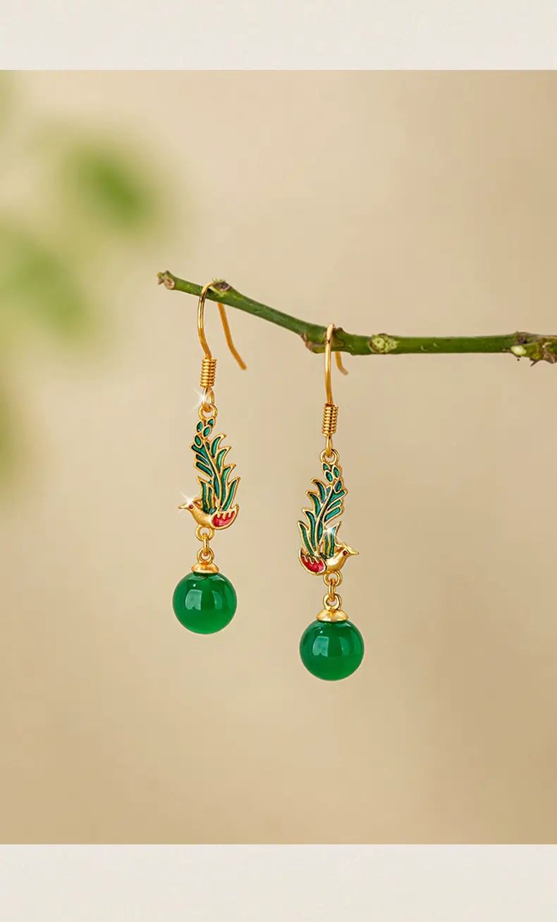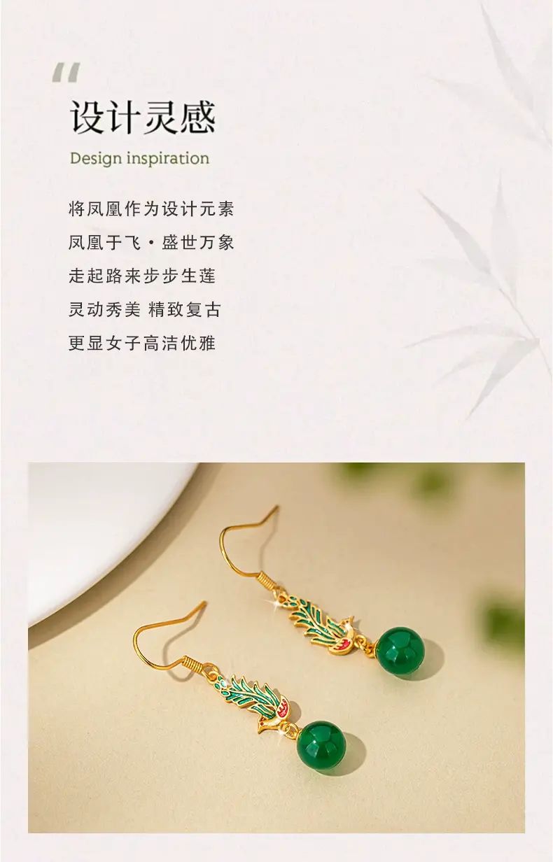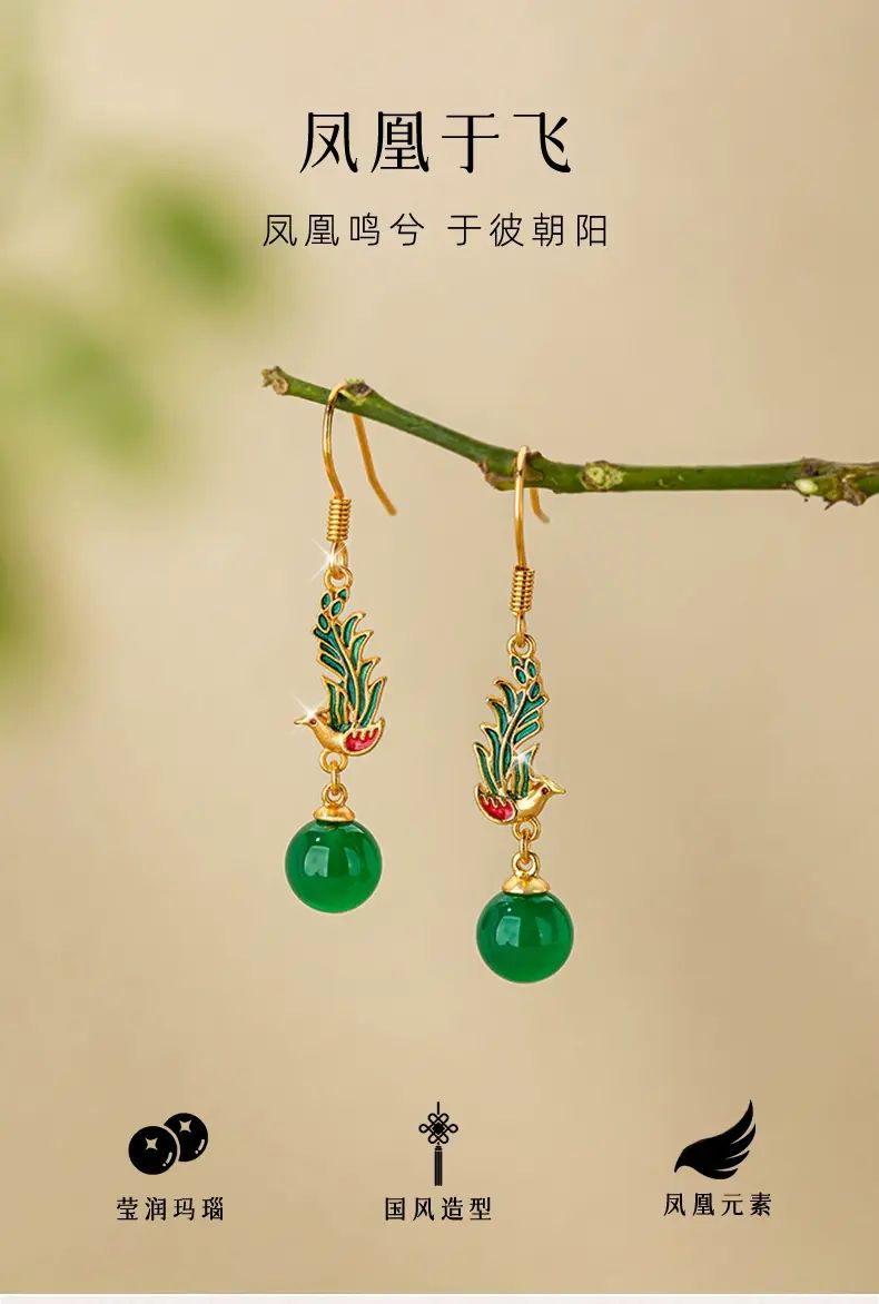 | Description | 古风新中式玛瑙耳环2025新款爆款高级感设计气质耳饰女耳坠配饰;绿色 |
