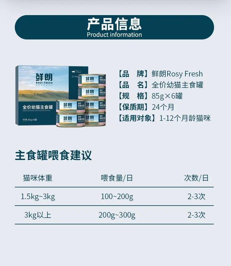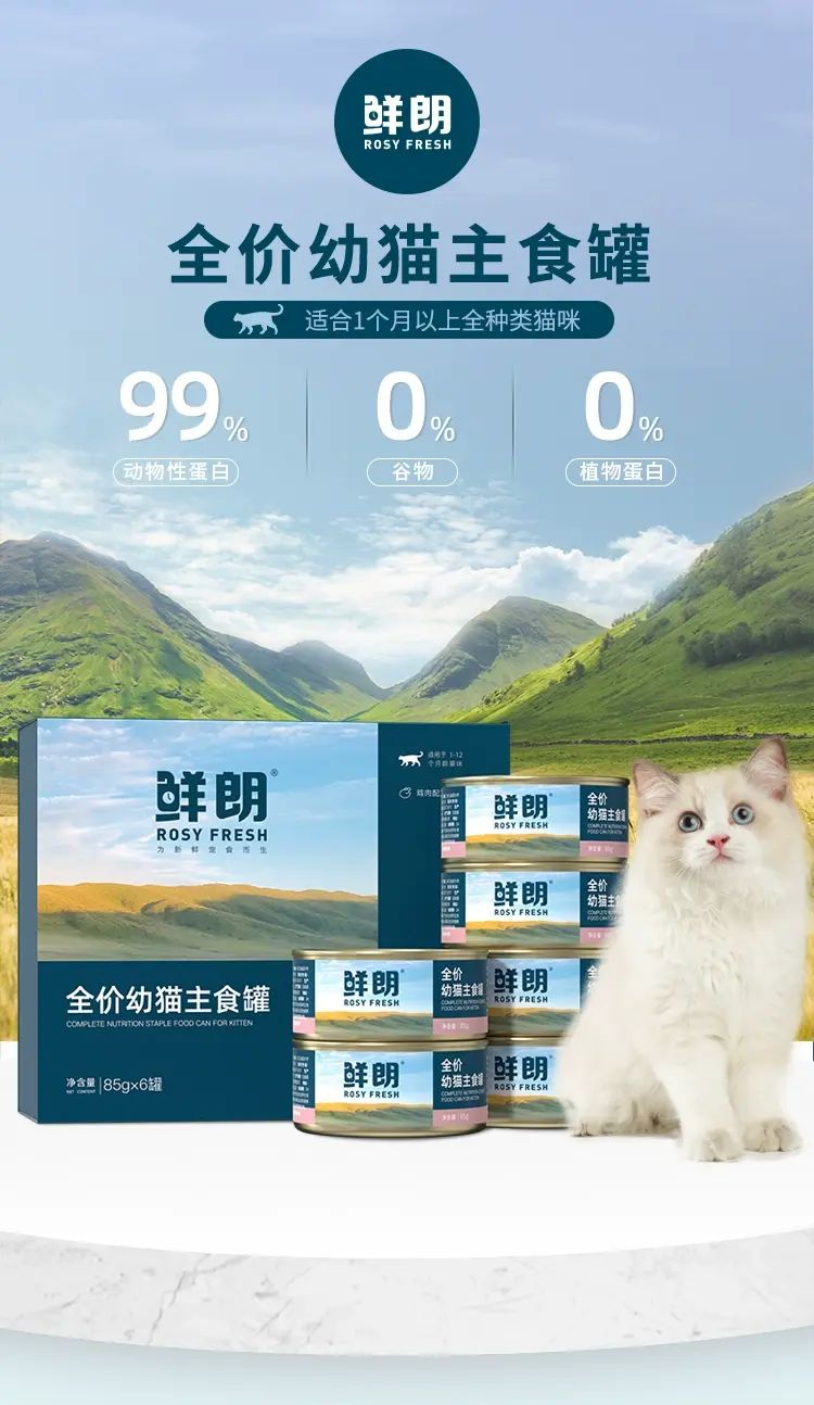 鲜朗幼猫主食罐慕斯奶糕猫罐头离乳期零食营养无谷全价湿粮保湿;;食品口味:鸡肉配方;净含量:1530g 【三盒装 共18罐】