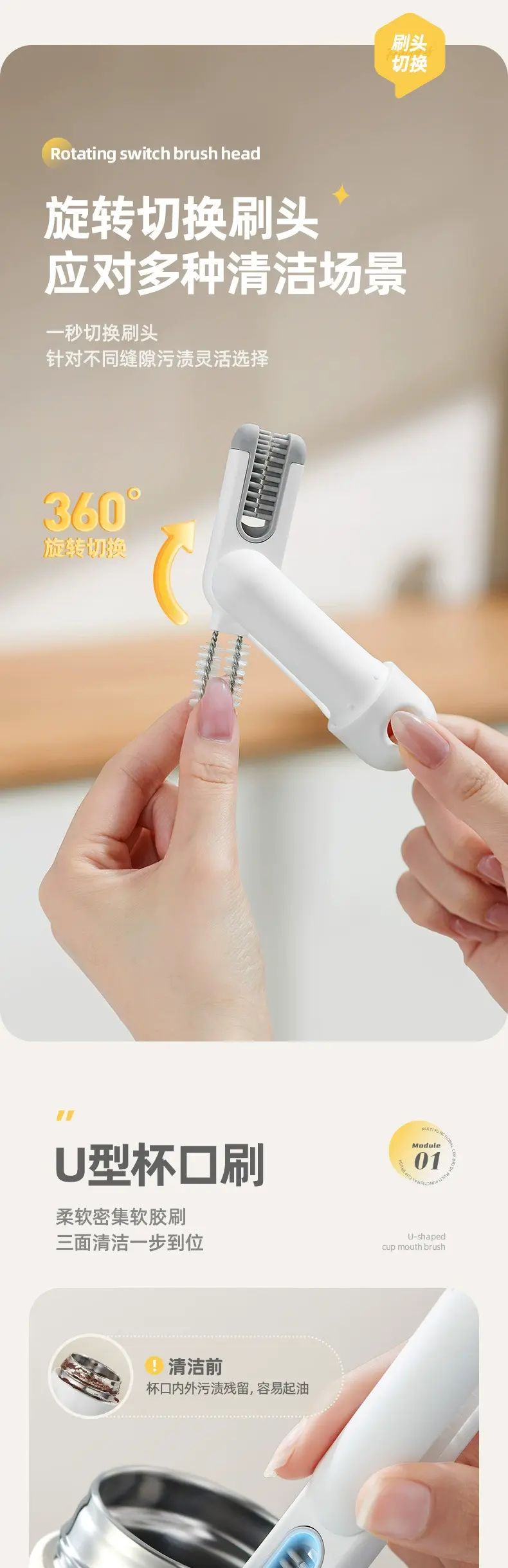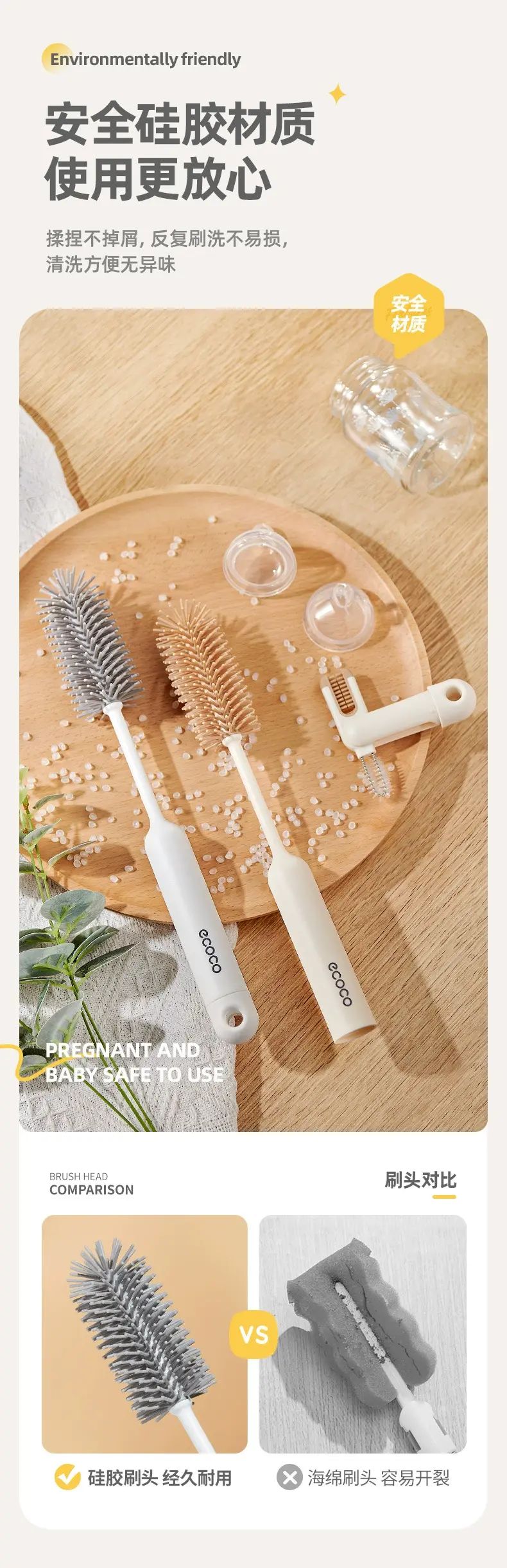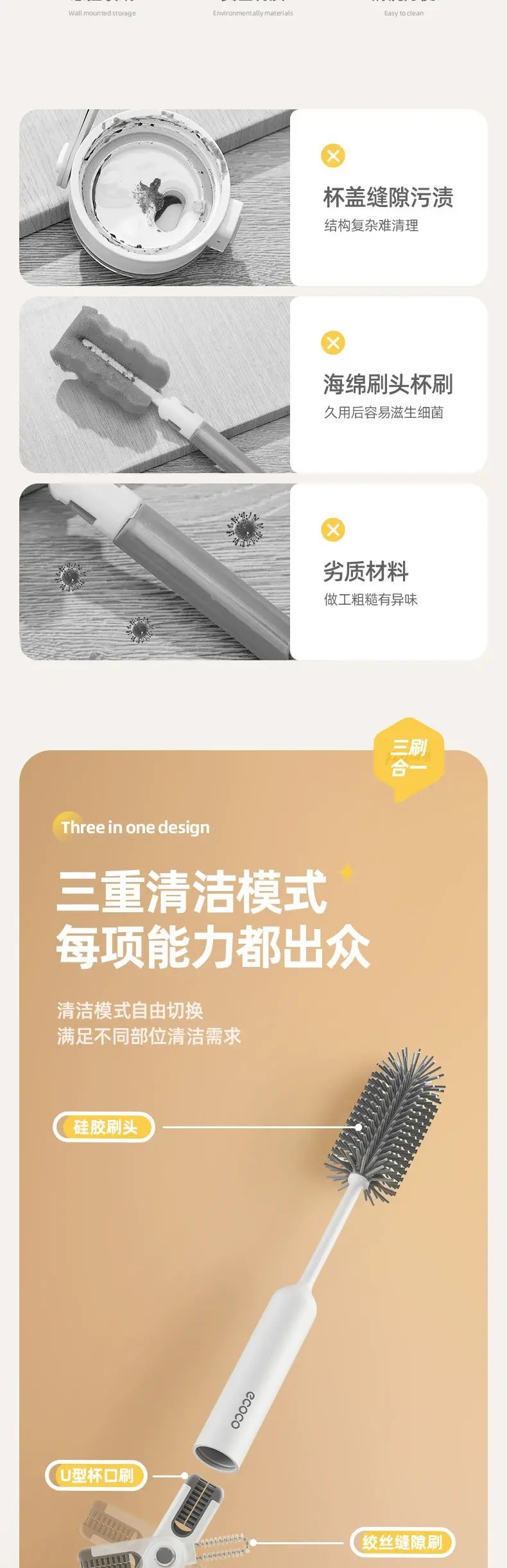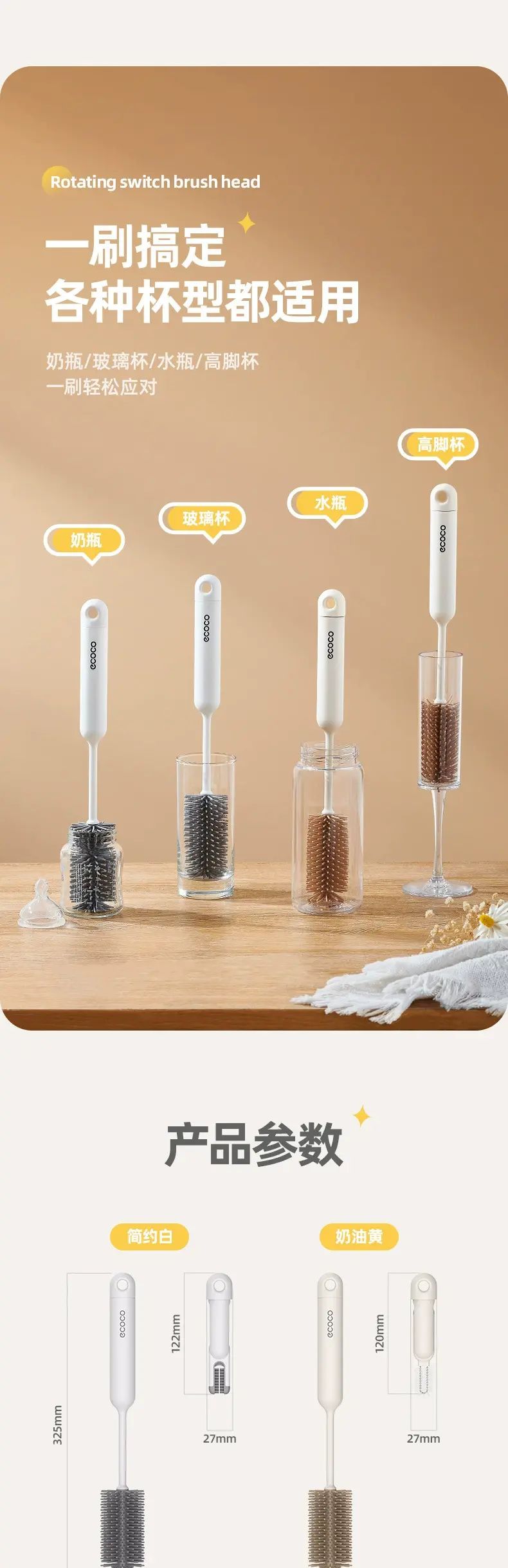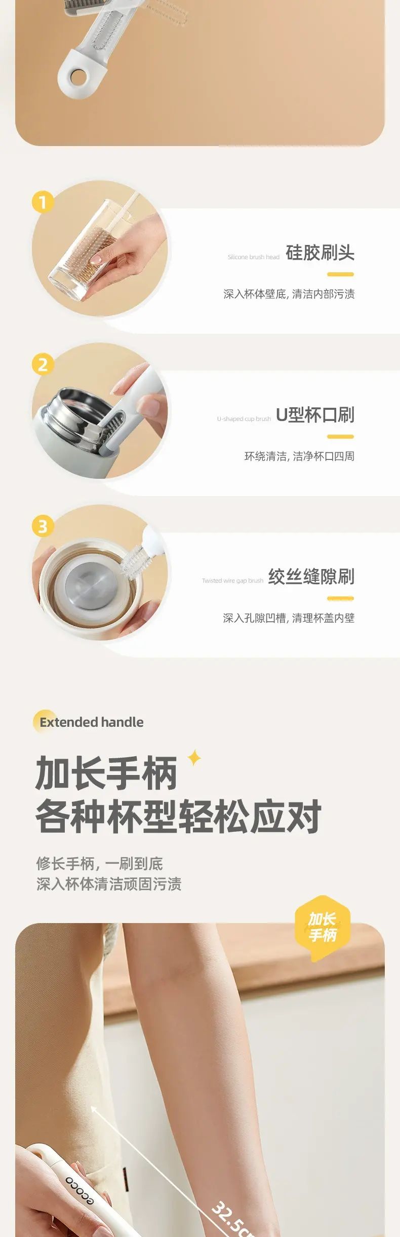 Description This cup cleaning brush is a must-have. Made of environmentally friendly, safe, soft, and durable silicone, it won't damage the inside of any cup. The long handle allows for easy access to deep areas like thermoses and baby bottles. The three-in-one brush head provides comprehensive cleaning without missing anything. It quickly removes stubborn stains and tea stains. Easy and labor-saving operation makes cup cleaning simple and efficient. A must-have.