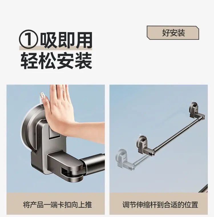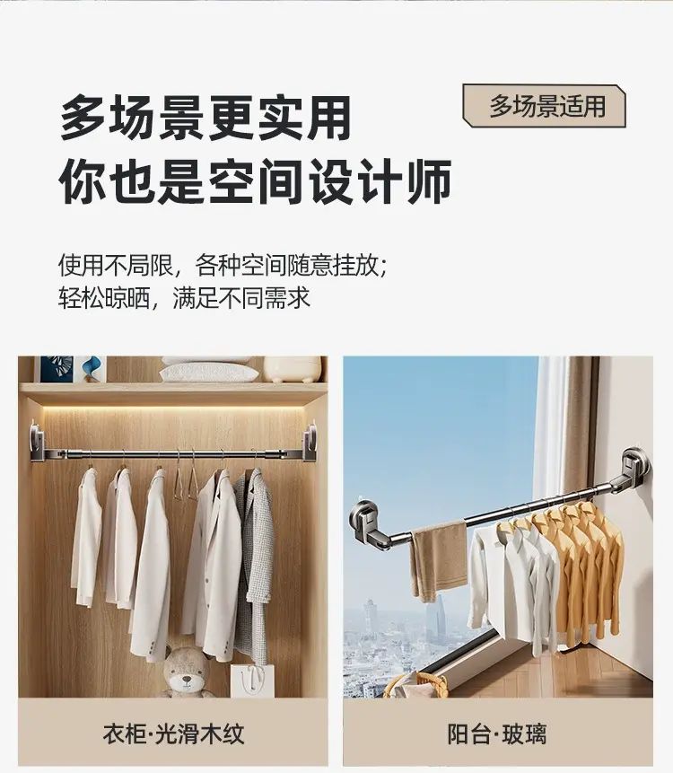 Description This punch-free suction cup clothes drying rack is ideal for drying clothes. Its strong suction cups ensure secure installation, eliminating the need for drilling and wall damage, making it suitable for both indoor and outdoor use. Its retractable design allows for flexible adjustment to suit your space and the amount of clothes you want to dry. Made of high-quality materials, it's durable and a breeze to hang clothes.