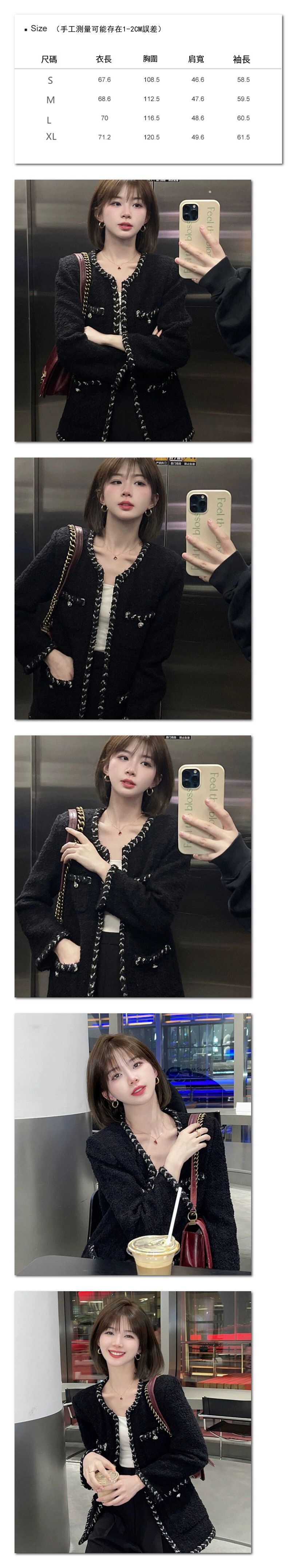 法式復古粗花呢小香風外套(黑色片珠黑)(尺碼:S/M/L/XL)(下單後聯絡客服確認發貨尺碼)#S002078075