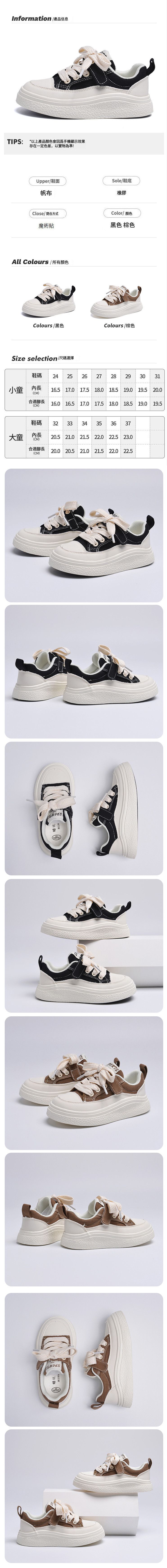 男童女童休閒復古運動板鞋(棕色 24碼-37碼)(下單後請聯酪客服確認發貨尺碼)