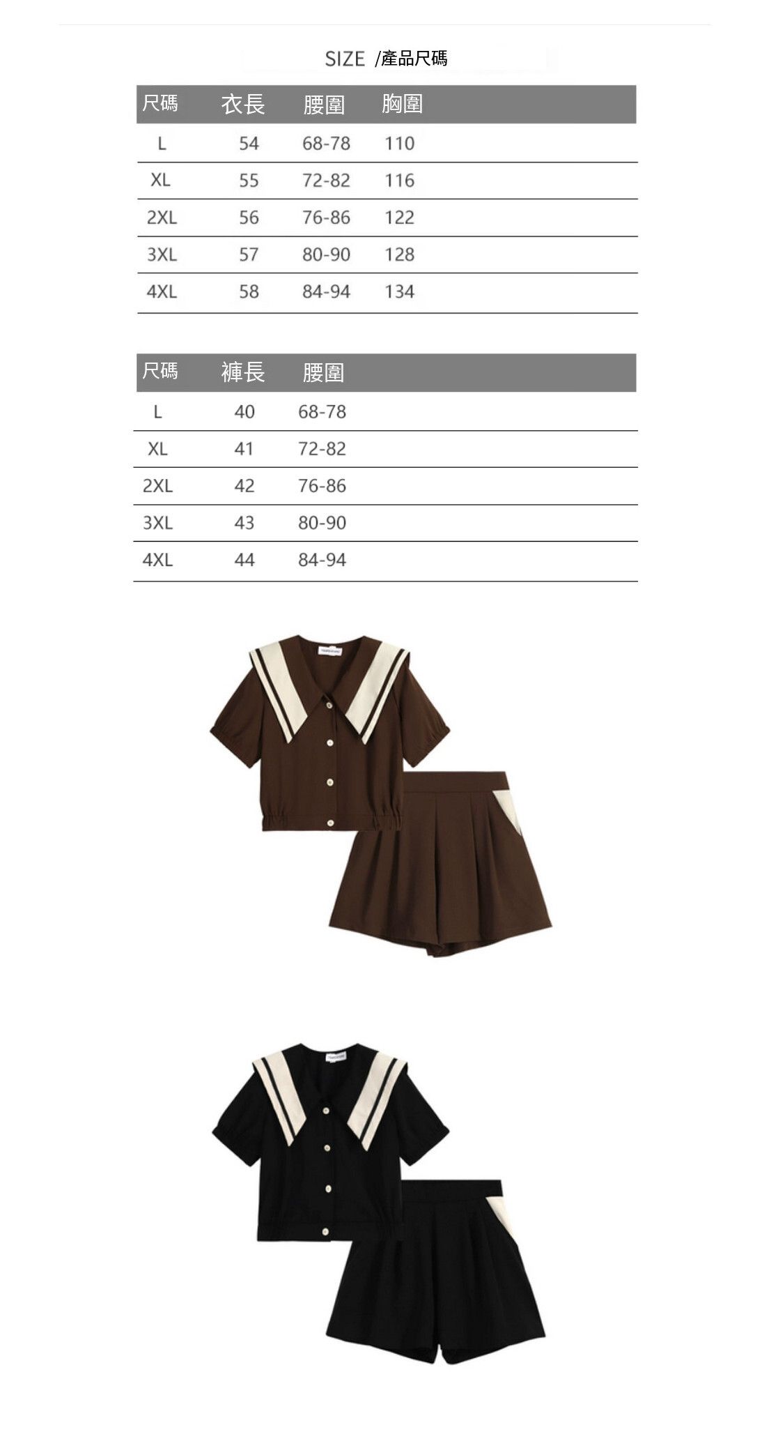 撞色短袖+短褲套裝【黑色】【L-4XL碼】(下單後請聯絡客服確認發貨尺碼)