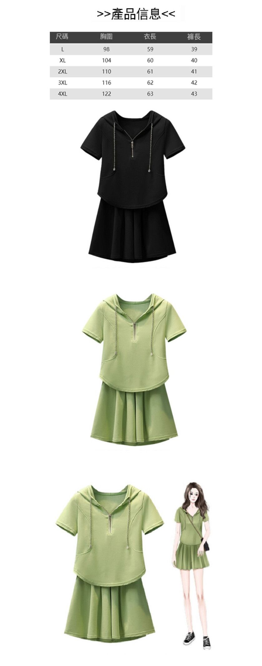 連帽上衣+短褲套裝【黑色】【L-2XL碼】(下單後請聯絡客服確認發貨尺碼)