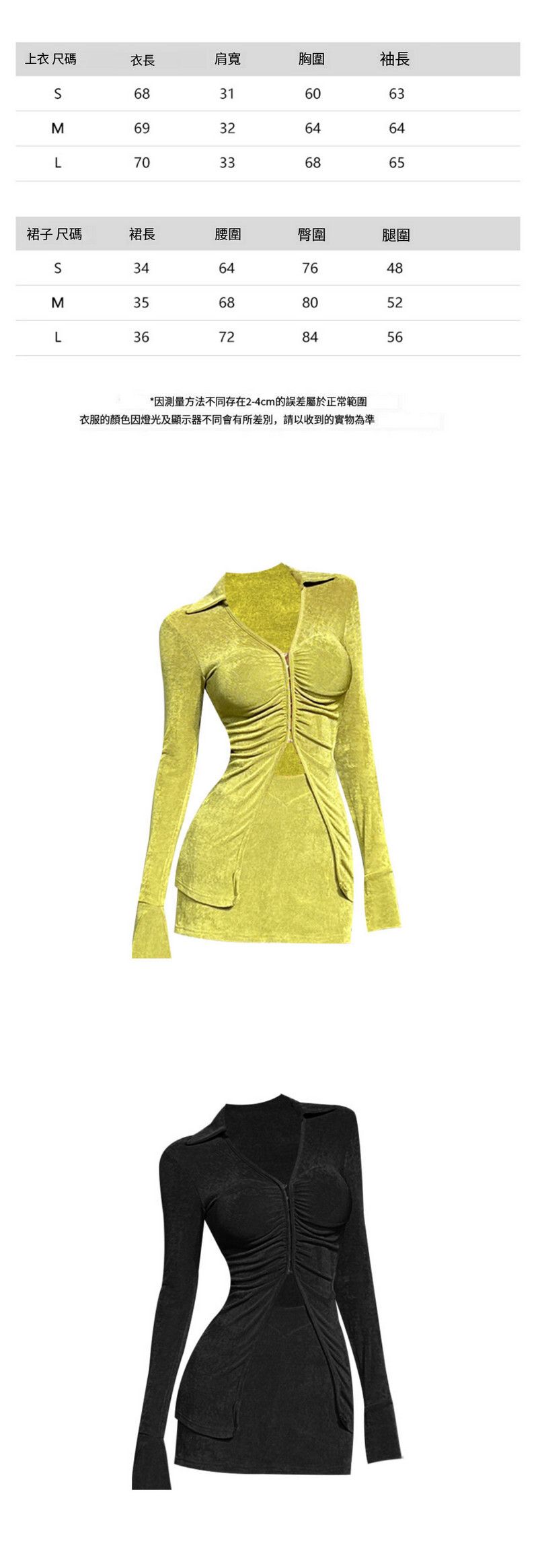 V領收腰上衣+高腰包臀短裙(黑色 S碼)