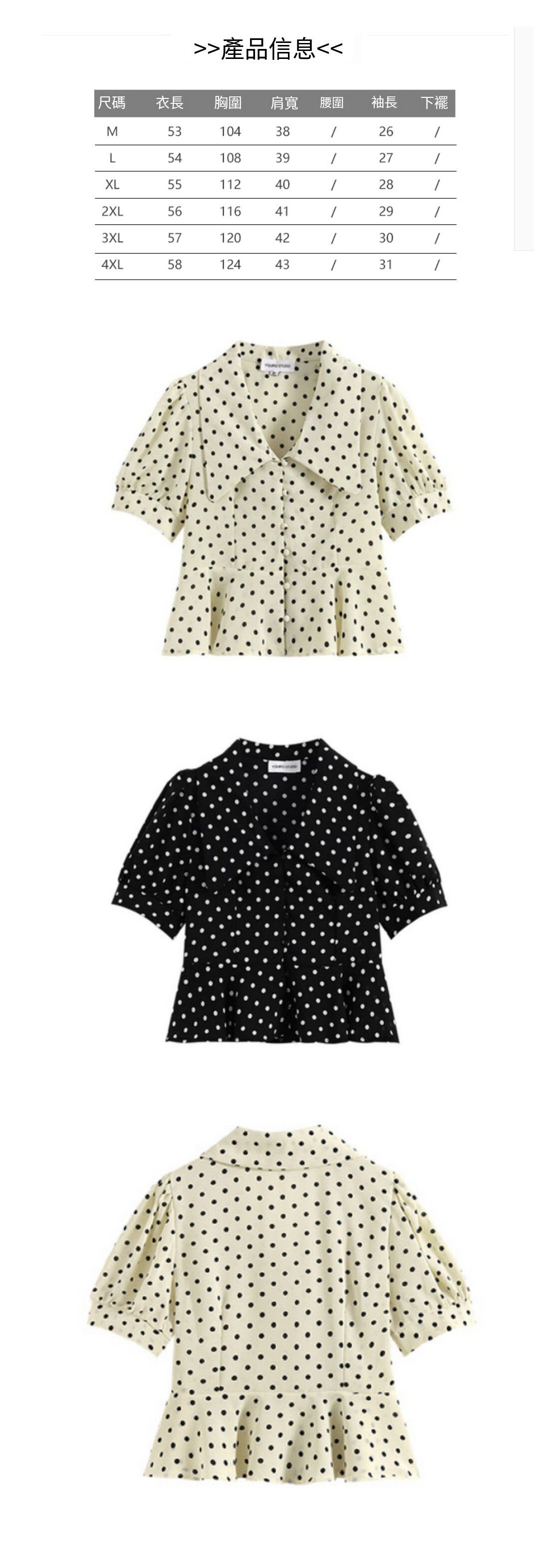 波點雪紡短袖上衣【黑色】【M-4XL碼】(下單後請聯絡客服確認發貨尺碼)