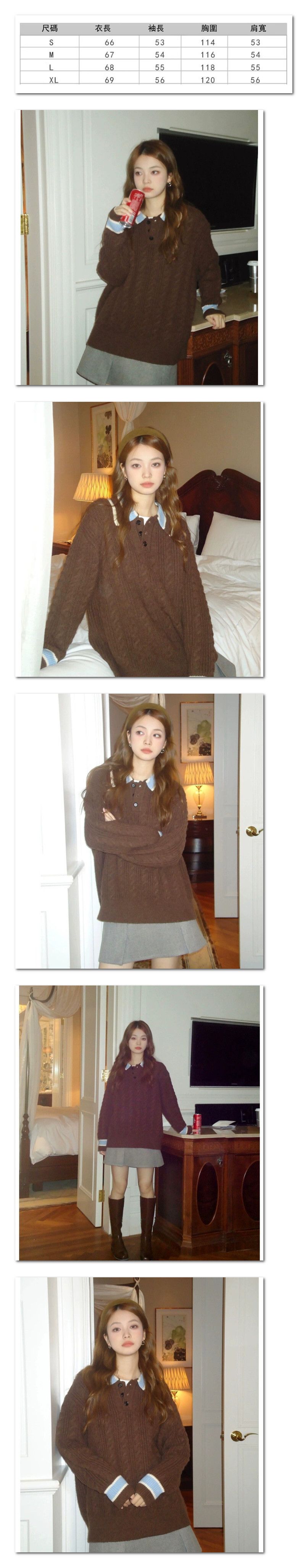 日系麻花針織毛衣 寬鬆上衣(咖色)(尺碼:S/M/L/XL)(下單後聯絡客服確認發貨尺碼)#S002078087