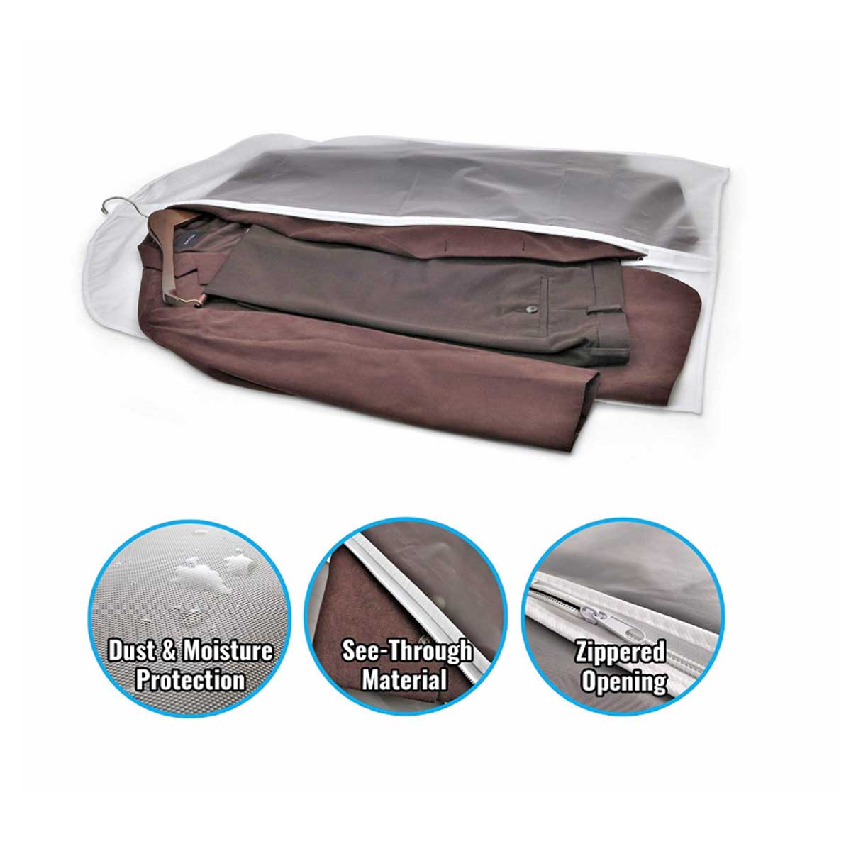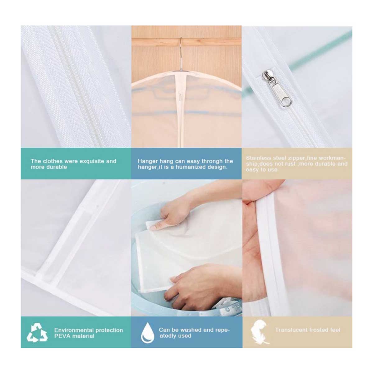 | Description | garment bags are made of polyester material, dust and water resistant, it can protect your clothing from dust and pets hair, keeping them fresh, clean and wrinkle free |