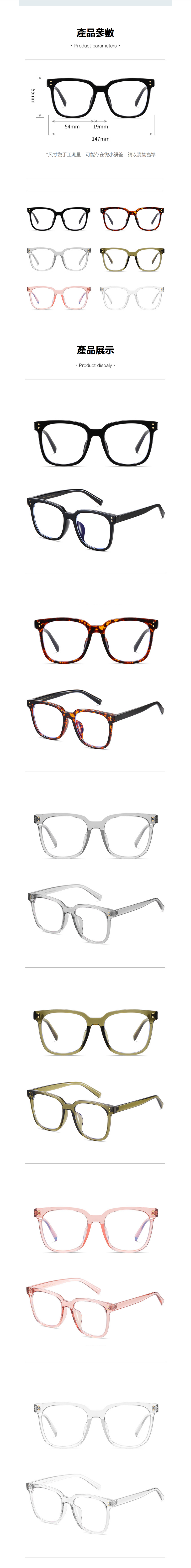 新款TR文藝復古鏡框女無度數時尚潮流平光鏡(亮黑色框+防藍光鏡片)