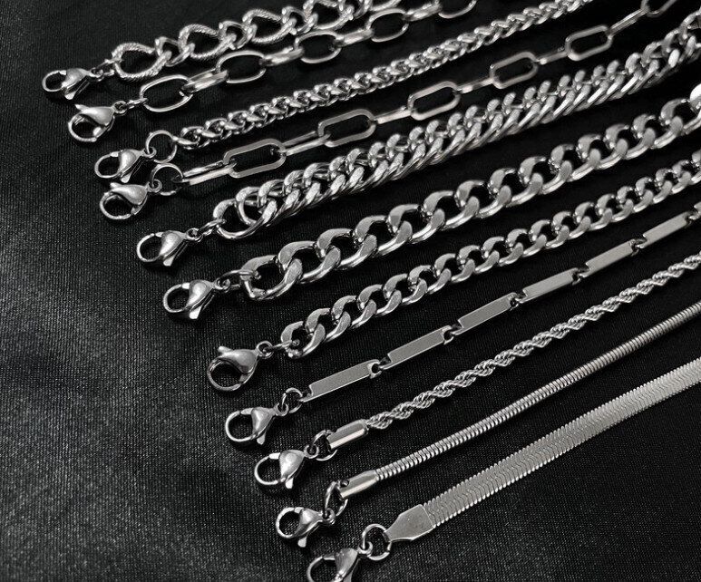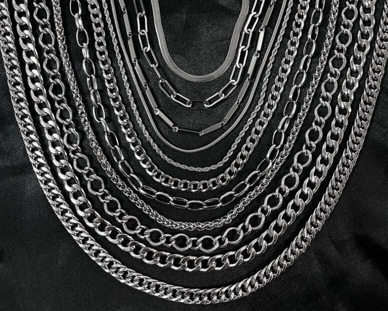 不掉色DK粗鏈菱形鏈嘻哈鍊項飾(3.0菱形鏈長60釐米)