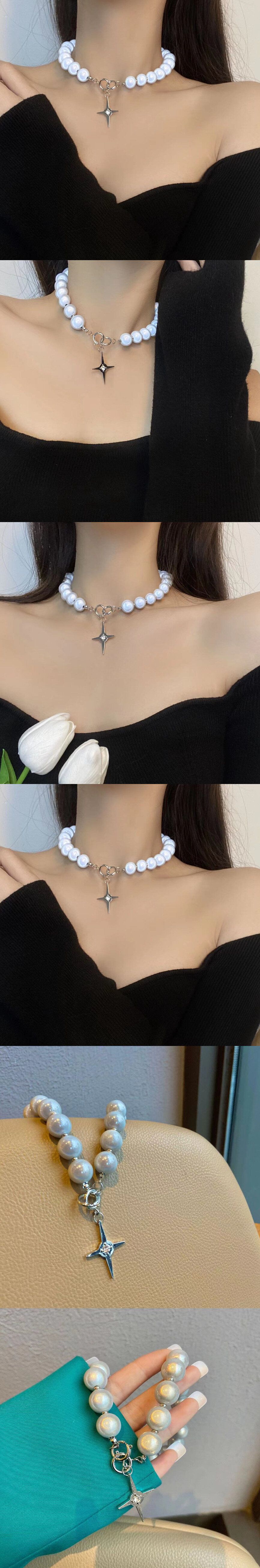 發光珍珠項鍊反光十字架串珠簡約鎖骨鏈女(1.2cm反光珠)