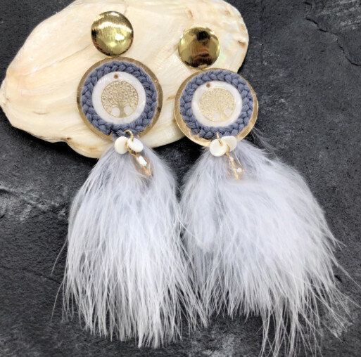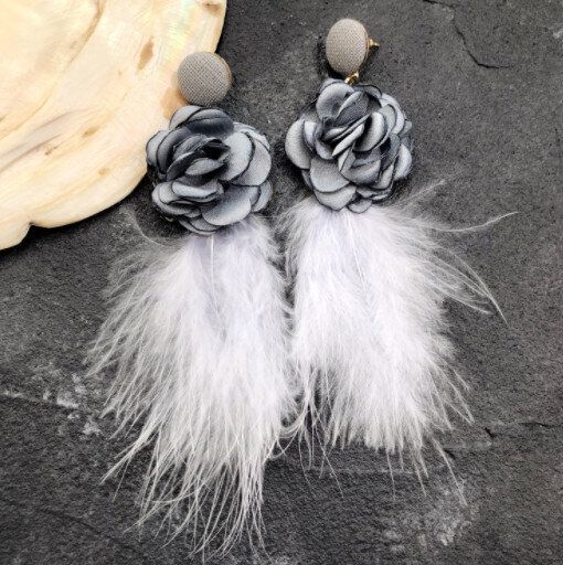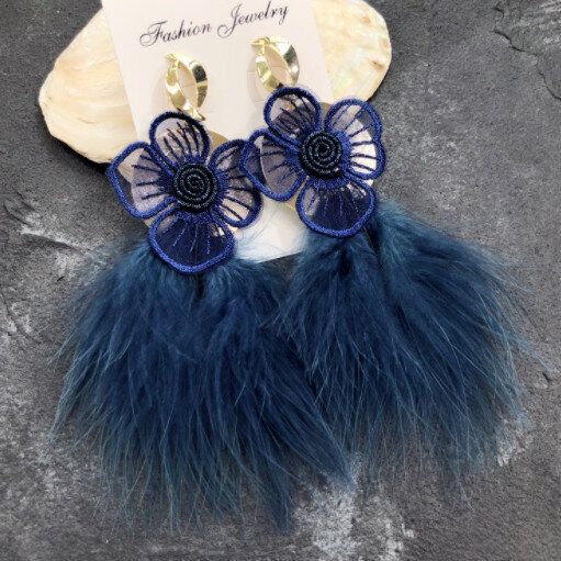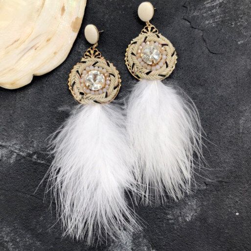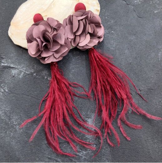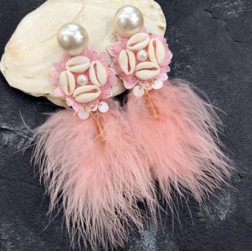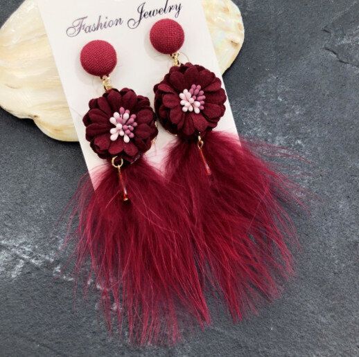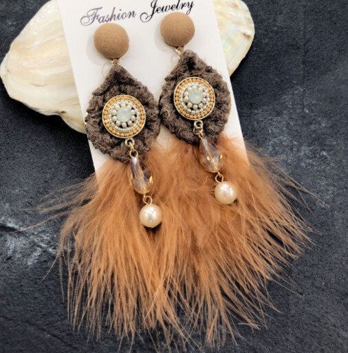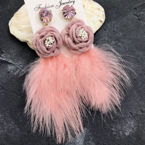 個性羽毛流蘇耳釘(4-大水晶花朵粉紅羽)