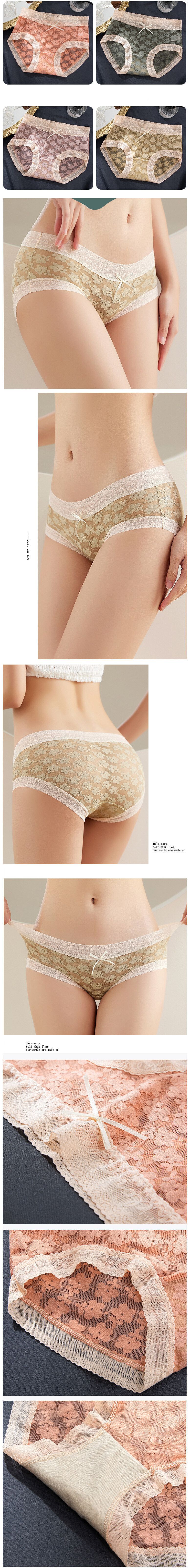 【5條裝】女士純棉襠中腰蕾絲邊三角褲 (M-XL碼)【顏色隨機 下單後聯絡客服確認發貨尺碼】