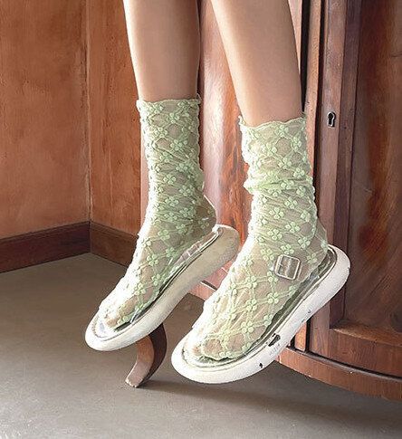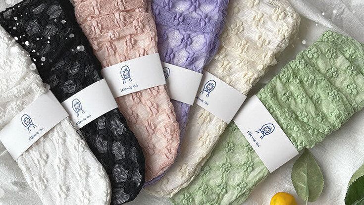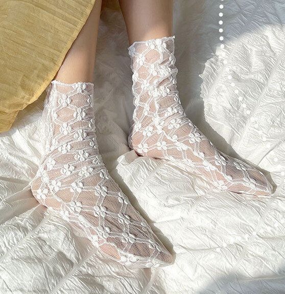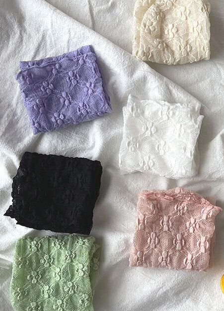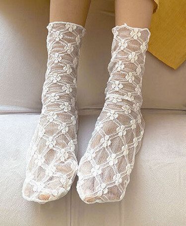 【3對裝】泡泡蕾絲堆堆中筒打底女襪(白色)