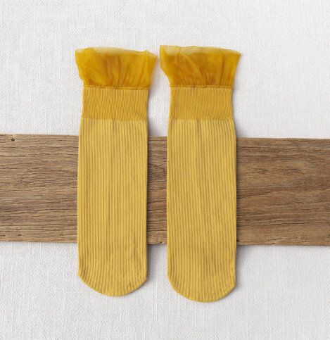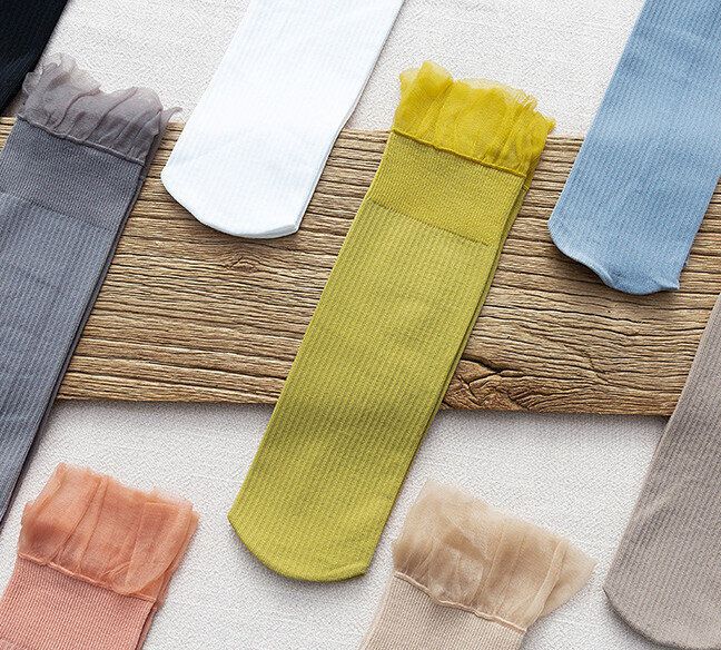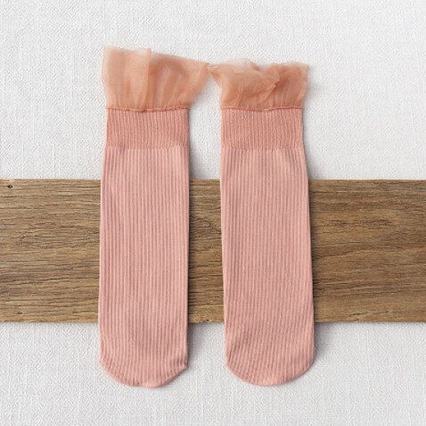 【4對裝】夏季蕾絲花邊中筒女襪(咖啡色)
