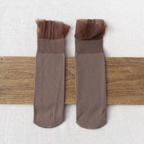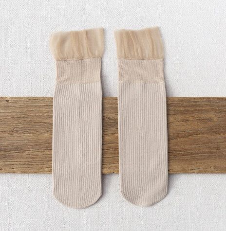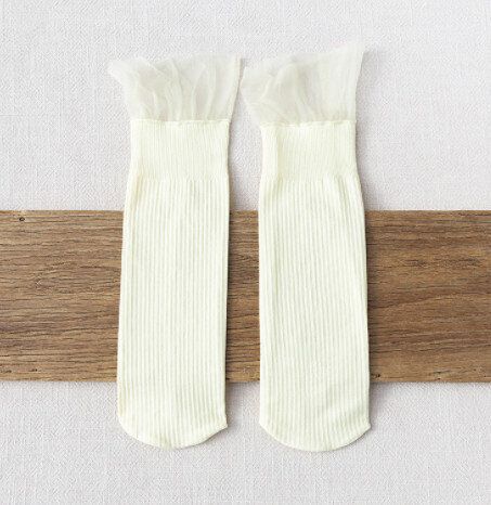 【4對裝】夏季蕾絲花邊中筒女襪(藍色)