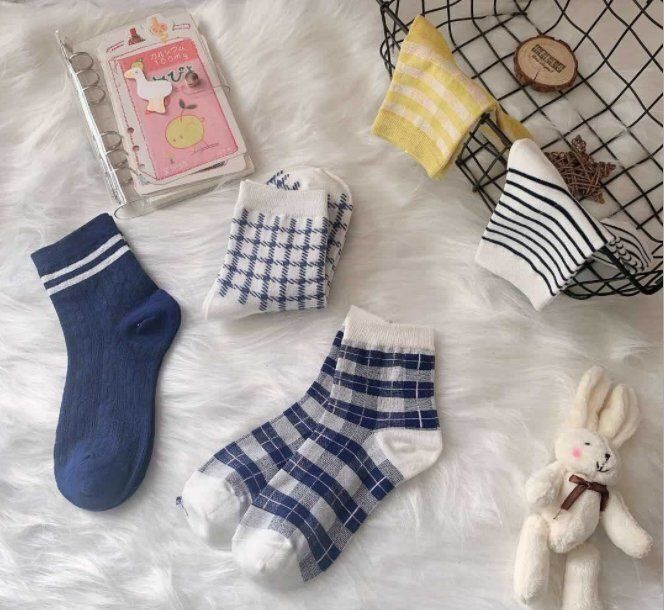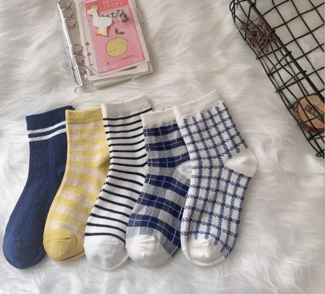 (5雙)襪子女條紋格子中筒襪