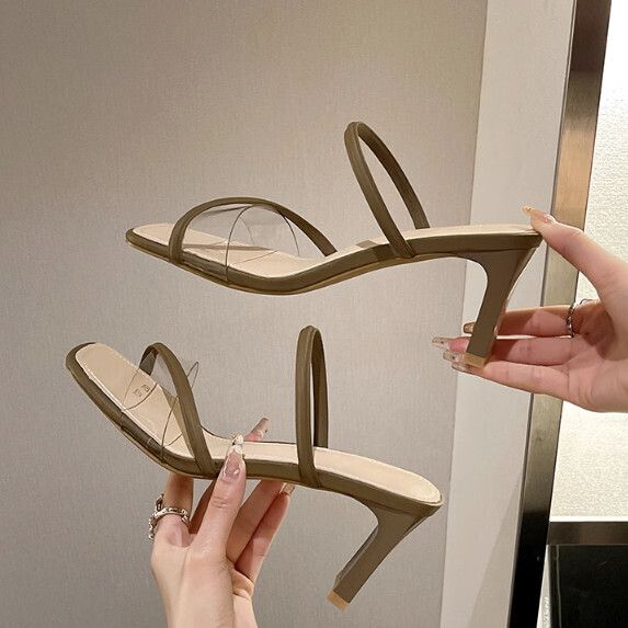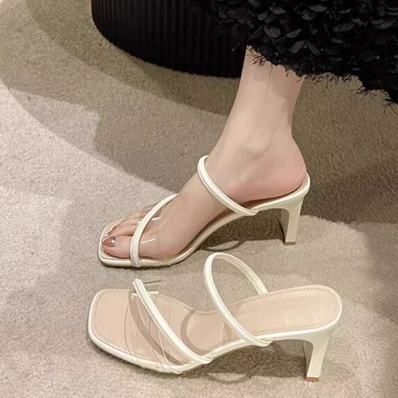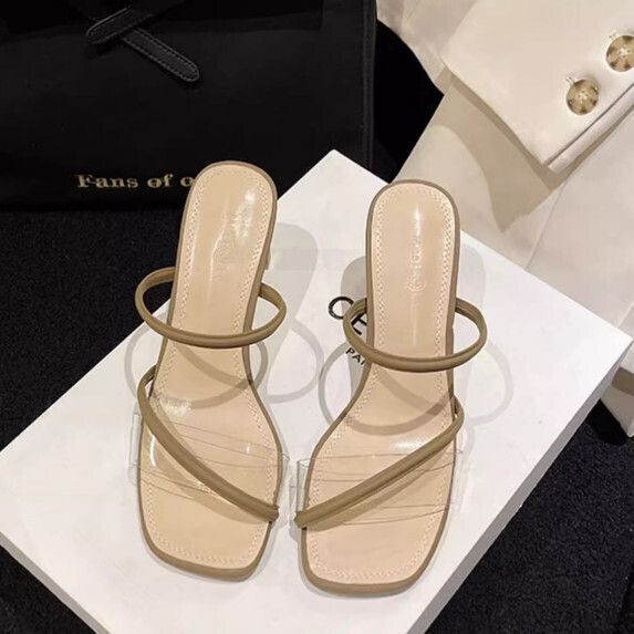 一字帶時尚涼鞋女夏(米色【35_40碼】(下單後聯繫客服確認發貨尺碼)