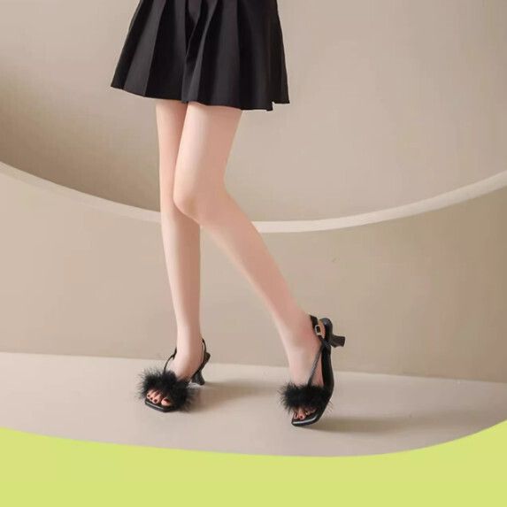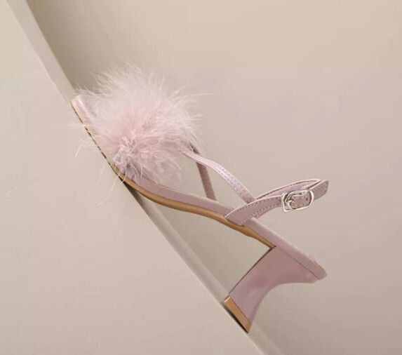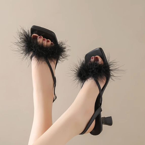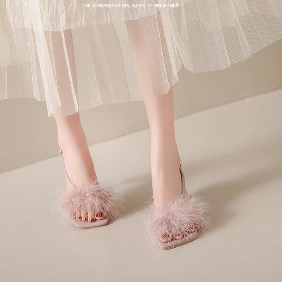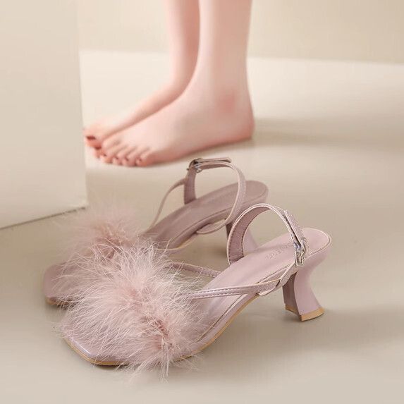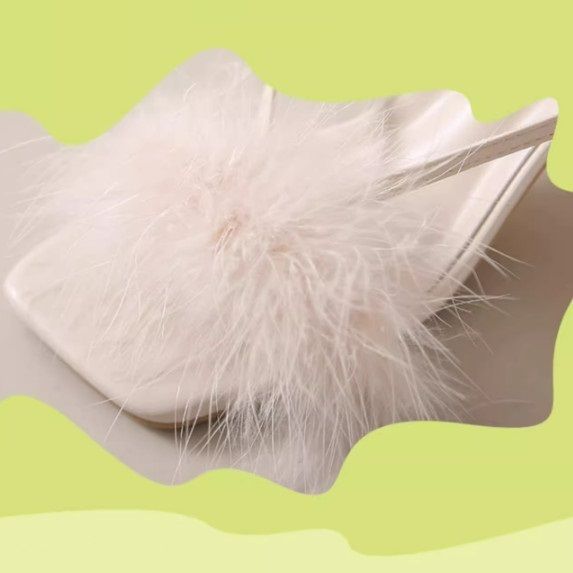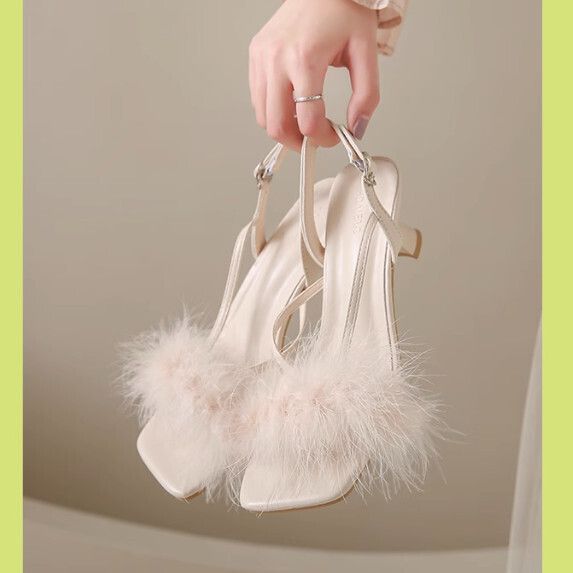 仙女風毛毛涼鞋女夏(米色【35_40碼】(下單後聯繫客服確認發貨尺碼)