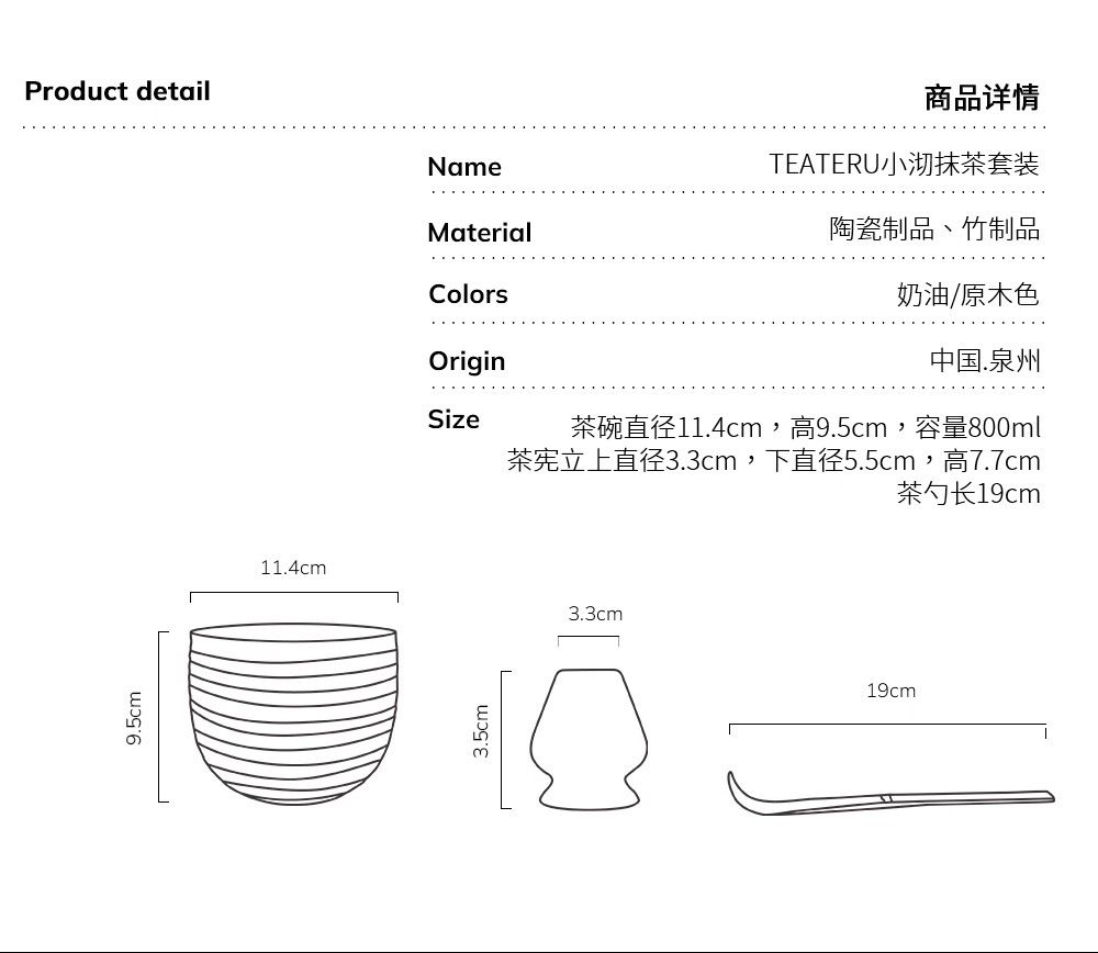Cream / TEATERU small brew matcha set. Choose cream colour with classic matcha bowl and tea shape. A four-piece set of tea bowls/tea whisks/tea whisk stands/tea spoons to meet the needs of novices in ordering tea. |