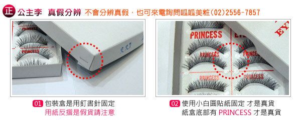 正牌公主李假睫毛 幾乎所有台灣明星、模特等之名女士都是非公主李假睫毛不戴(如林志玲),更是台灣頂級彩妝師的化妝箱中必備的品牌 |