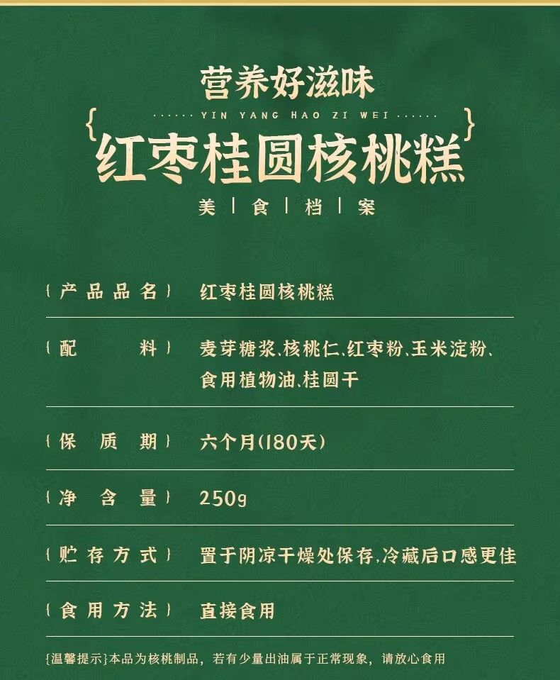 手道木川红枣桂圆核桃糕250克手工中式糕点好吃不粘牙