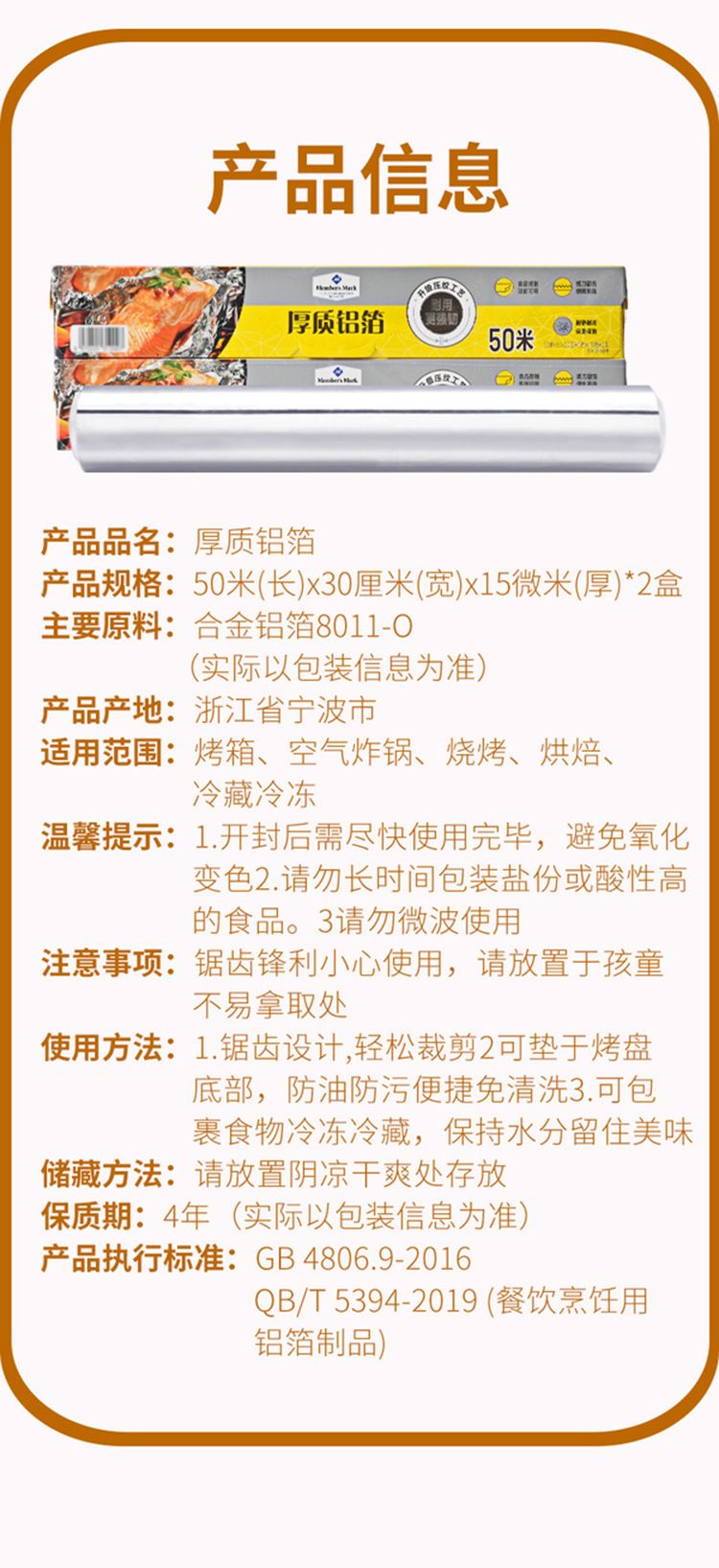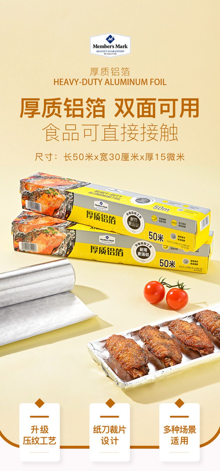 Sam's direct purchase Member's Mark thick aluminum foil tin foil paper 50m * 2 boxed double-sided can be baked in the barbecue oven to keep fresh and heat resistant and cold resistant