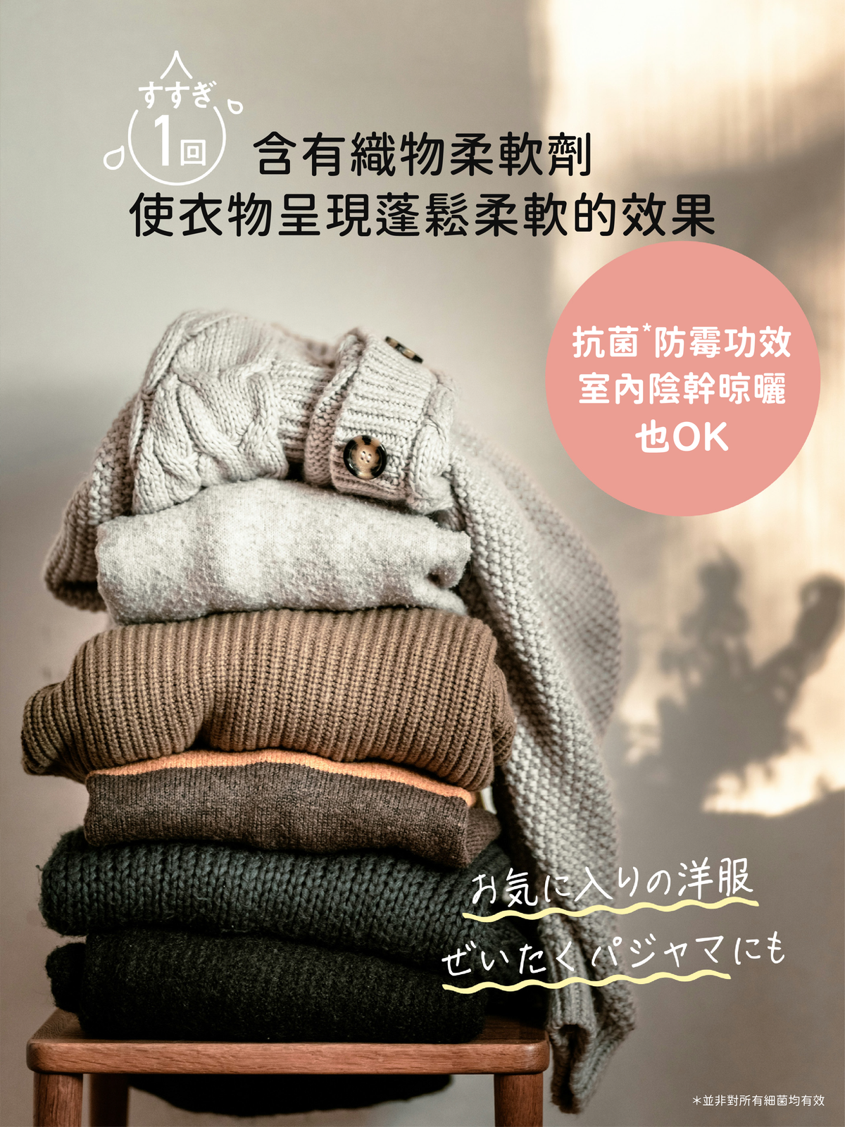 Contains fabric softener for a soft washing effect. A gentle detergent suitable for delicate clothing that prevents laundry damage.