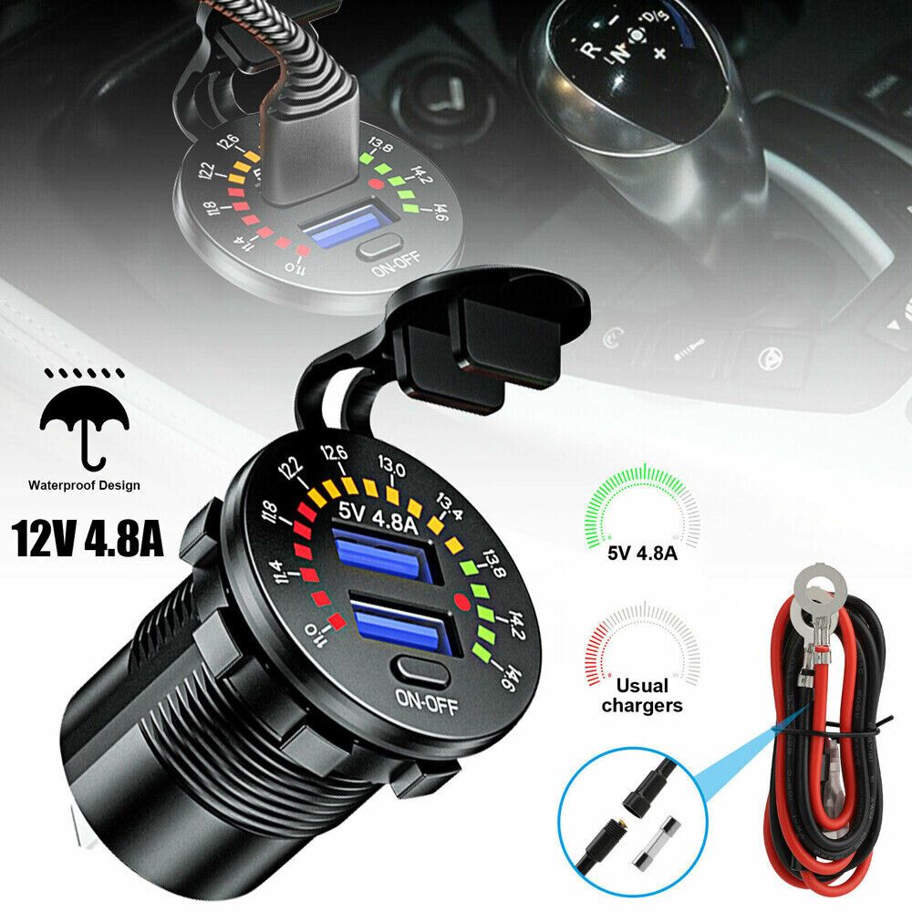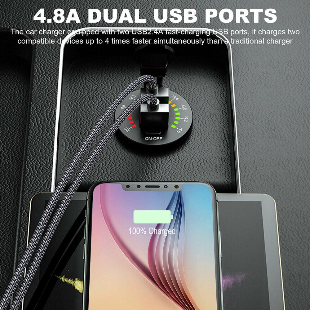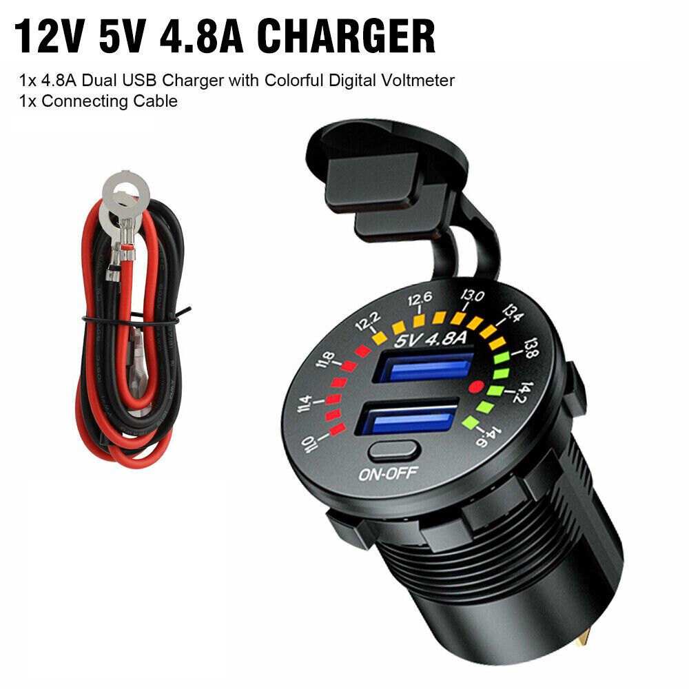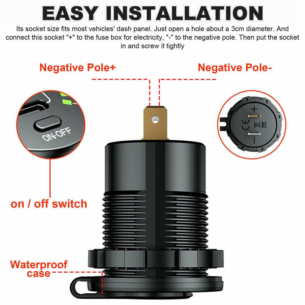 Intelligent fast charger with voltage display, high voltage warning, charging rate can be displayed Suitable for mobile phones, tablets, GPS and other USB devices. Color: Black Input voltage: DC 12-24V Output:5V 4.8A or QC3.0 & PD (optional) Size: 50x36.8x29mm Package list: 1x Charger 1x Connecting Cable |