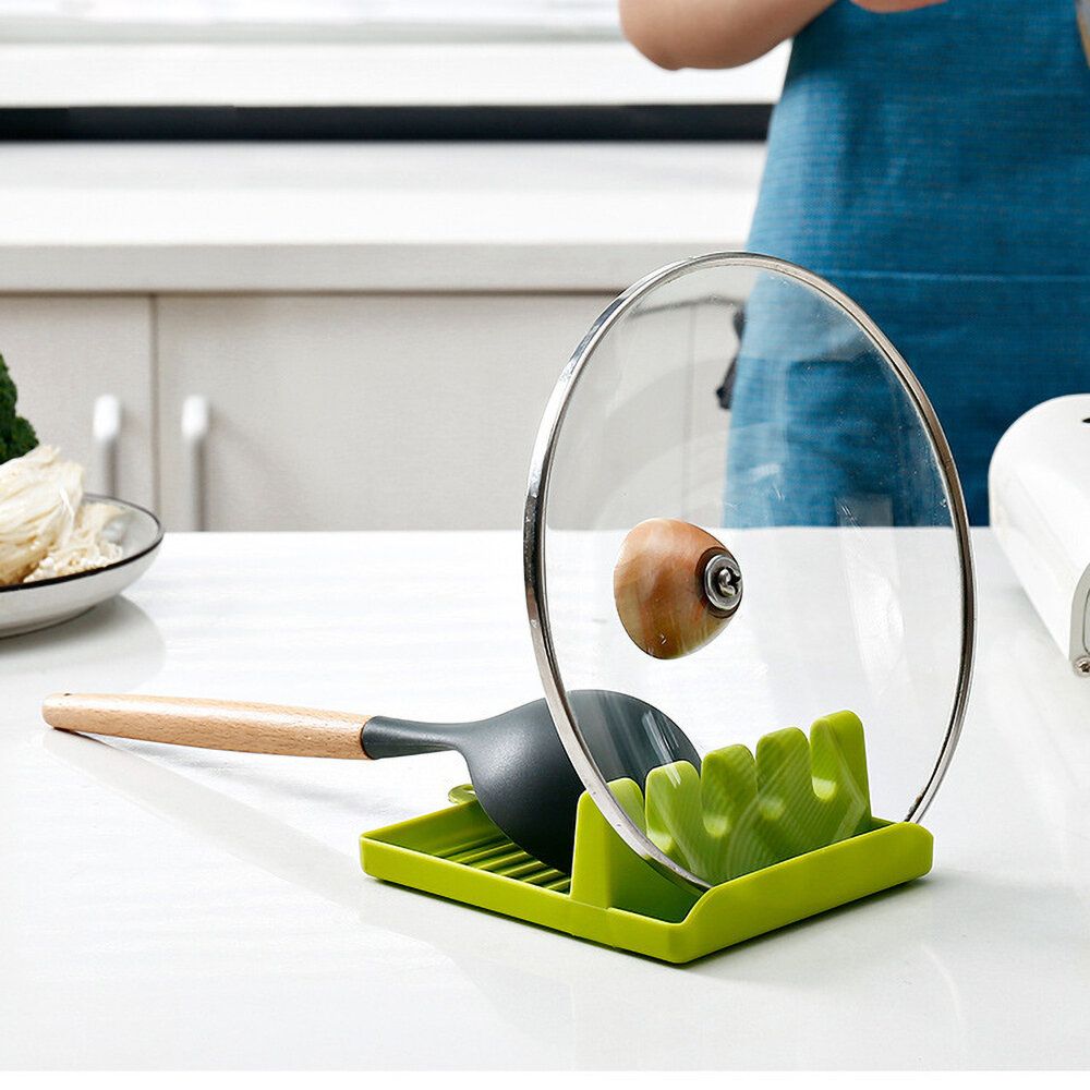 ✨Color: Green ✨L12.7x W14 x H5cm ✨Multi-functional integration of pot lid holder and spoon holder ✨Let you cook more worry-free and say goodbye to messy countertops ✨Get rid of greasy, soupy countertops ✨Wave tooth design, non-slip storage first-class rod ✨The lids of large and small pots can be stored |