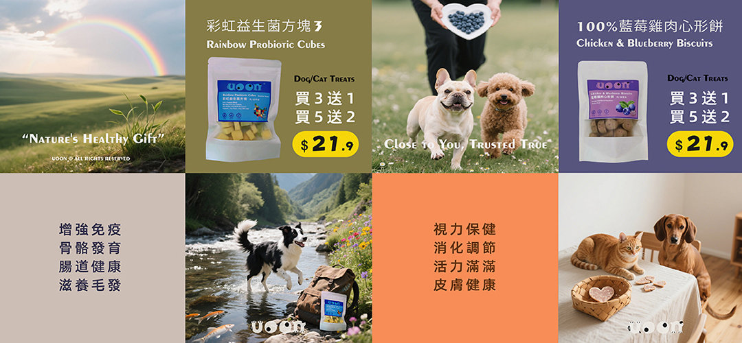Every furry friend is a cherished family member. UOON (Unleash their true nature, Organic care, Obligation to protect, Nature as our foundation) embodies our philosophy of pet wellness—crafting treats with pure ingredients, creating safe and reliable pet supplies, and designing thoughtful travel gear for every adventure.