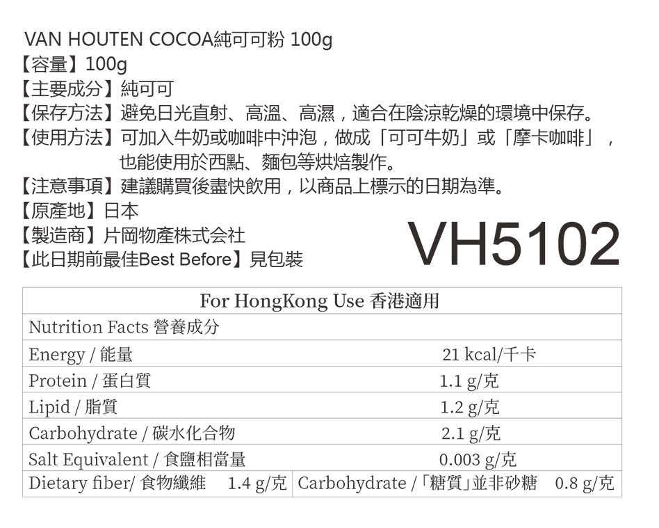 [Best Before:Feb 2027] This classic pure cocoa powder does not contain sugar or milk, but has a rich cocoa aroma. You can add it to milk or coffee to make "cocoa milk" or "mocha coffee", and it can also be used in baking such as pastry and bread. - Origin: Japan - Ingredients: Pure cocoa, without any flavorings or additives - Capacity: 100g |
