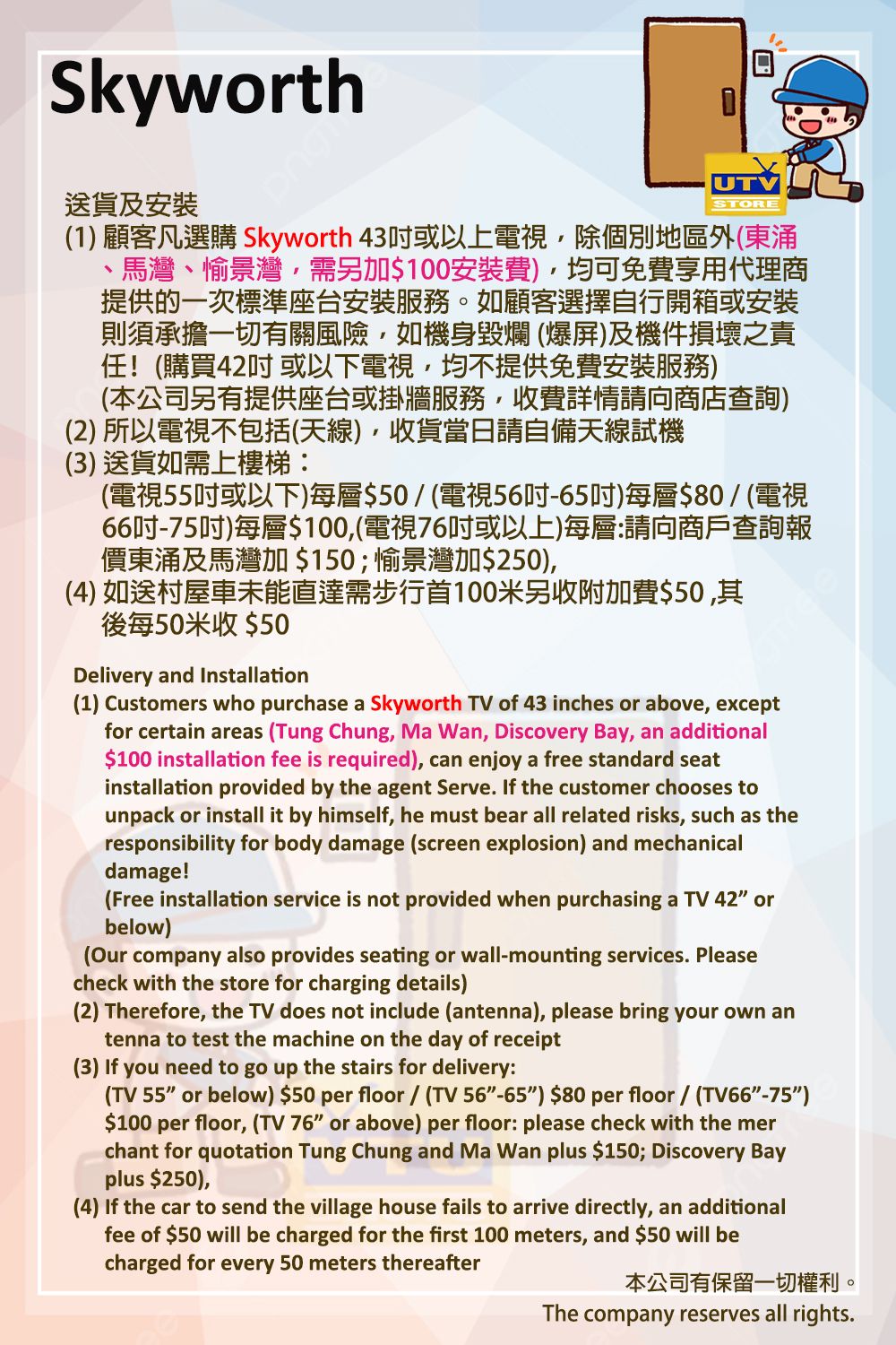 6) Original manufacturer's installation personnel (excluding connection of external devices and testing). 7) Our company shall not be liable for any direct or indirect losses arising from the installation of televisions or other products on feature walls/marble walls, including but not limited to: