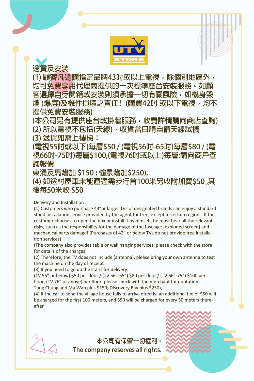 3) One free standard stand installation service is provided for 43-inch or larger TVs from designated brands (excluding remote areas).
