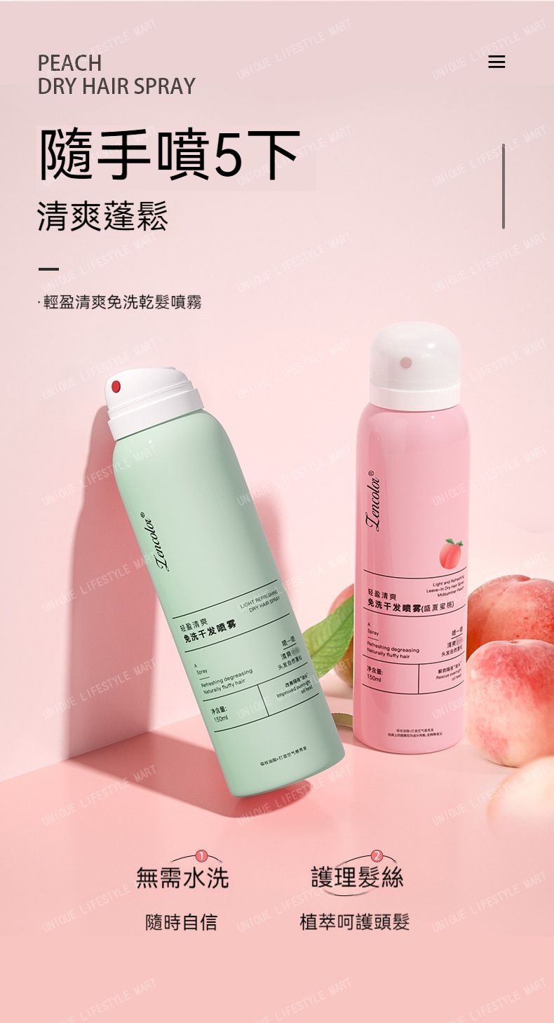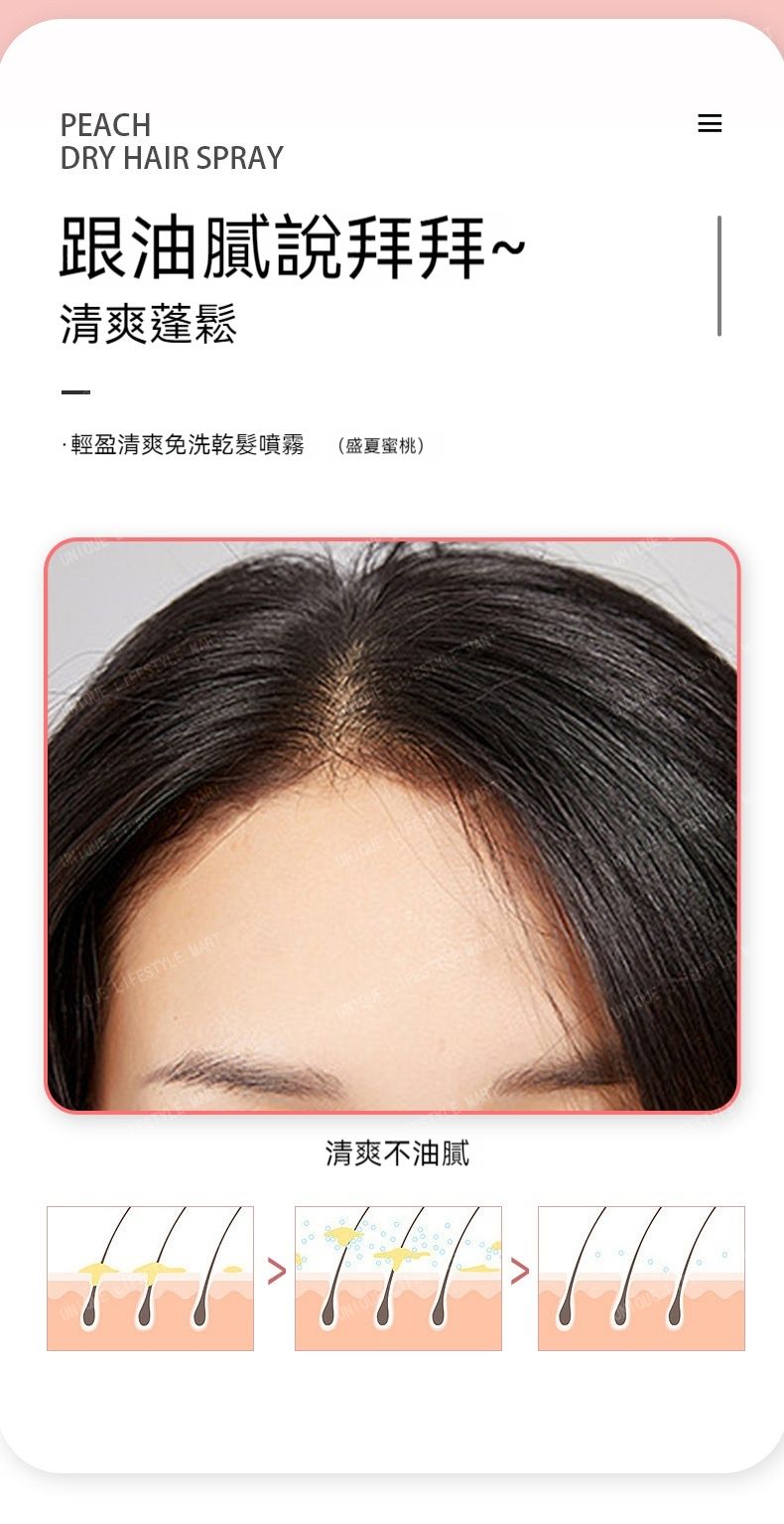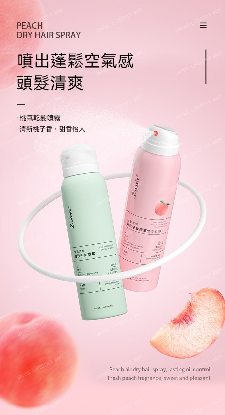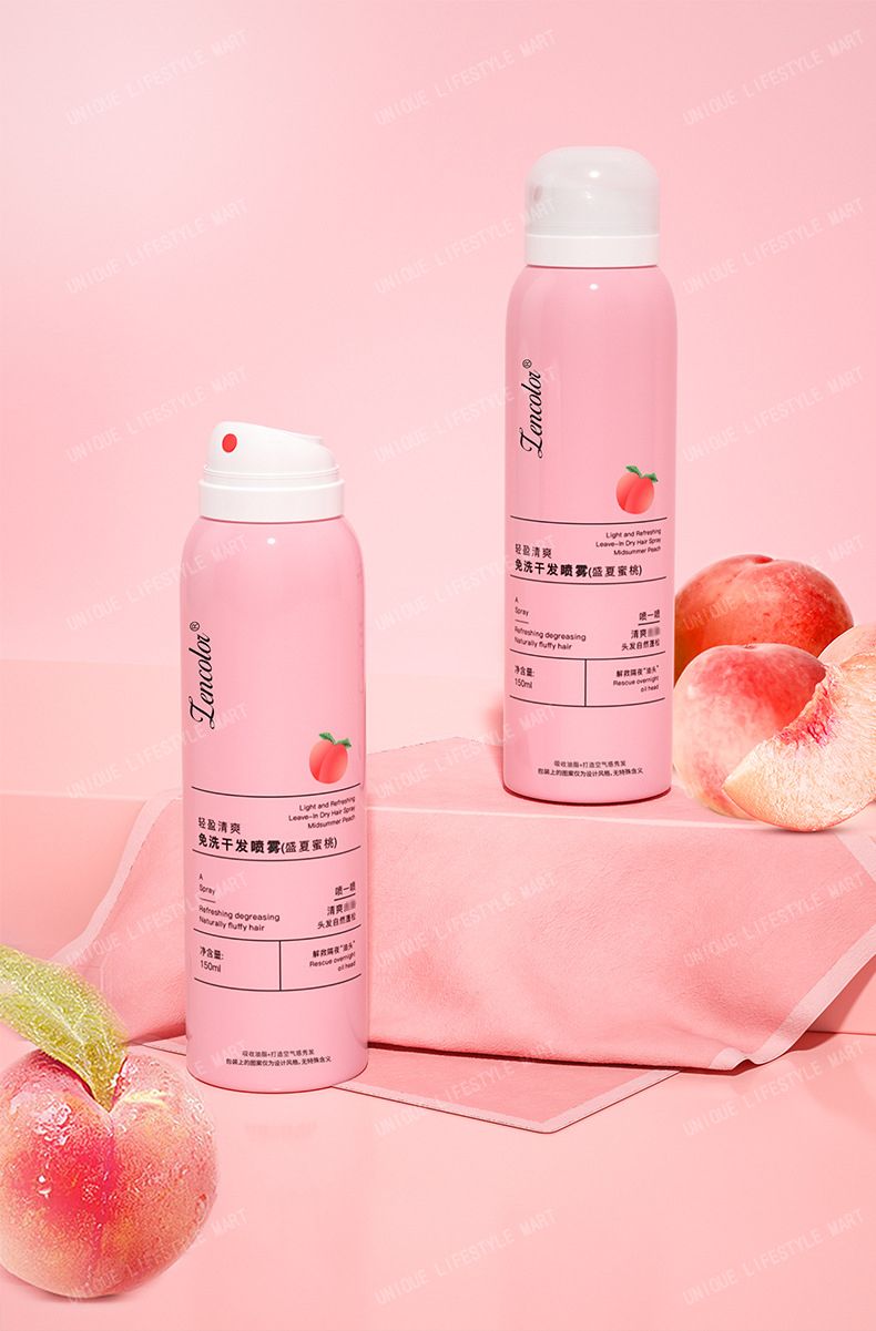 Rinse-free, oil-removing, fluffy, refreshing and fragrant dry hair spray [Pink: Summer Peach/Green: Light and Refreshing] - Dry hair agent | Portable oil control spray for lazy people | Unisex dry hair spray | Dry cleaning spray | Hair fluffy tool