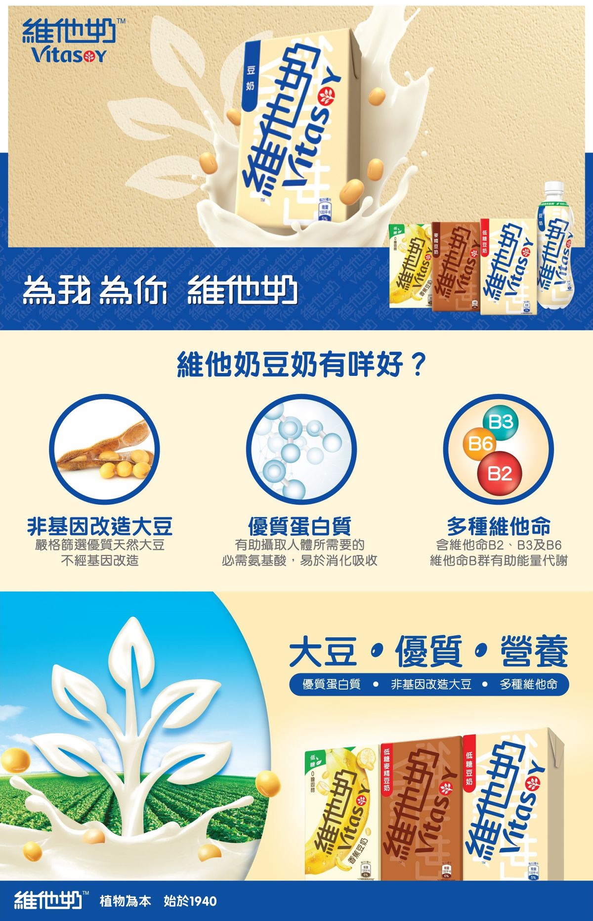 維他奶於1940年創立,八十年來致力為大眾提供高品質飲品及食品。「維他奶」與「維他」更是豆奶及茶類的領先品牌,於市場中佔領導地位。