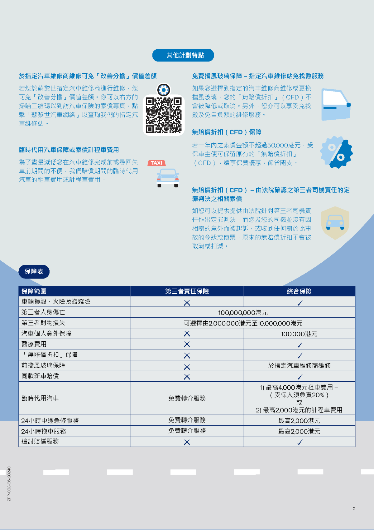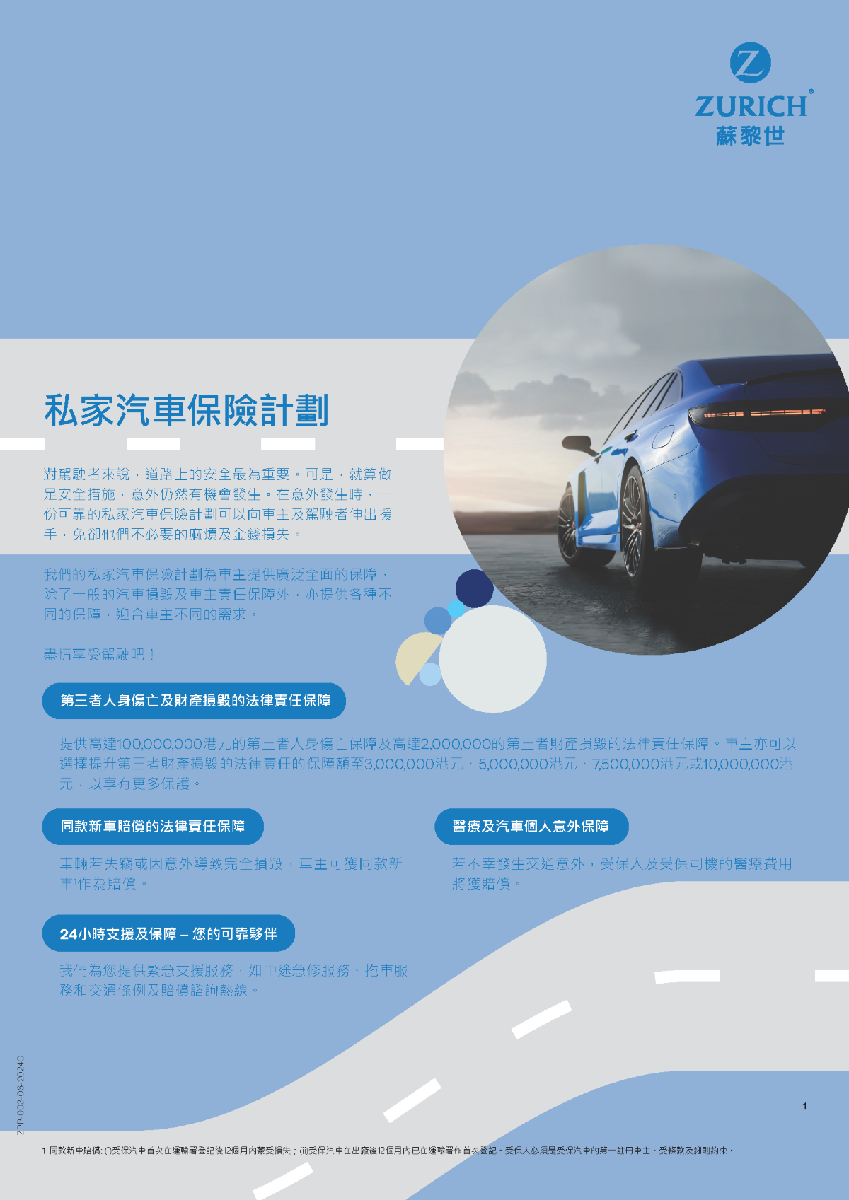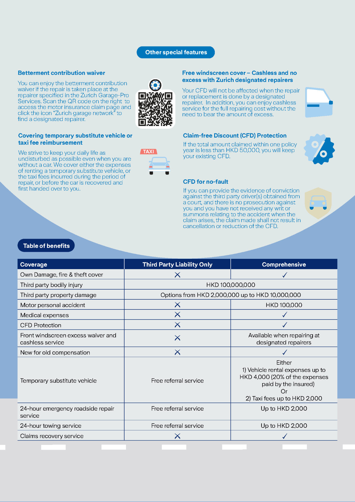 Before purchasing your insurance policy, please carefully review all the information on this page, including photos and detailed descriptions. Annual maximum coverage Third-party bodily injury: Up to HKD100,000,000 Legal liability coverage for property damage: Up to HKD10,000,000 Replacement for the same model car: If your electric vehicle is stolen or completely damaged, you’ll receive a replacement for the same model*. *Term and conditions apply |