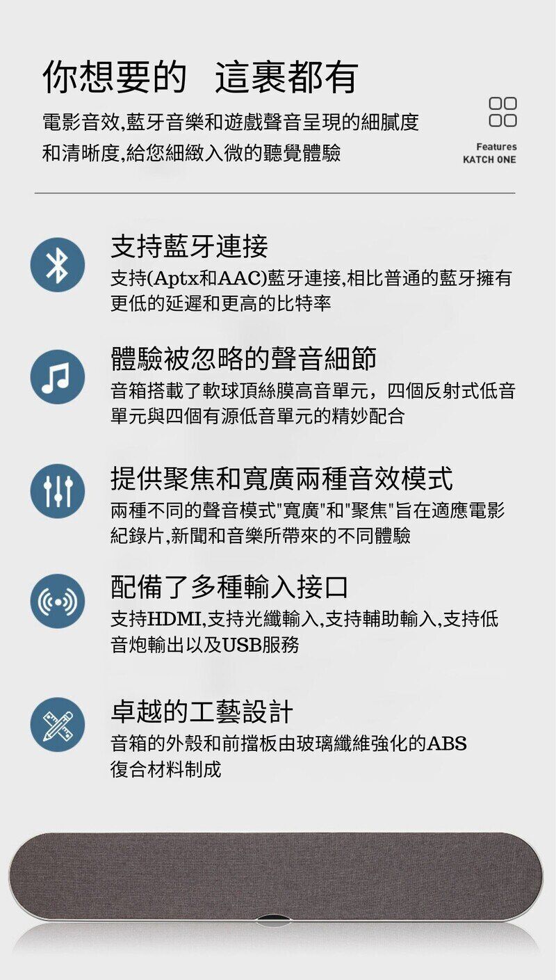 - Let the voice be focused, thick and passionate. - High penetration and sense of space - Perfectly achieve high-quality sound to improve the TV experience. - Equipped with hangable, putable and lockable, considering the factors of wiring and home needs, different installation methods are provided |