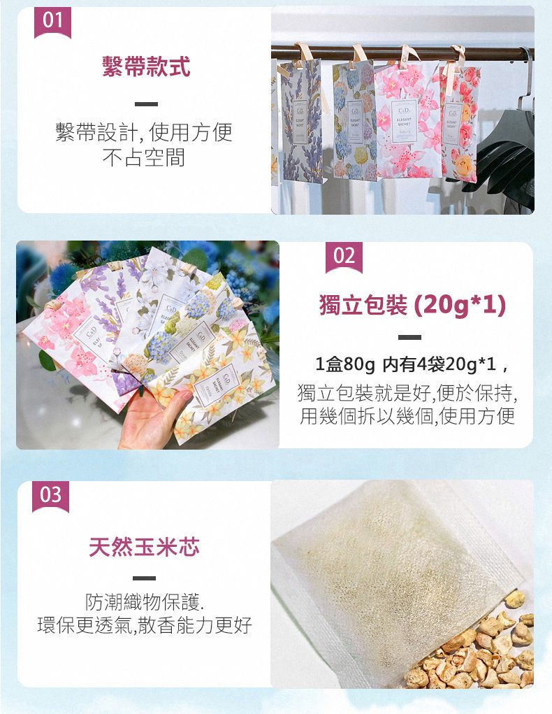 Wardrobe hanging bag drawer dehumidification and deodorization moisture-proof car sachet bathroom sachet Deodorizing and removes odor, long-lasting fragrance, wardrobe deodorizing, fragrant clothes moisture-proof and mildew-proof bag Package size: 12*4.5*20 CM Can be stored in wardrobe, car, drawer, suitcase, bag, bathroom and shoe box Specifications: 1 set of 4 packs 20g x 4 Non-returnable Country of Origin : China parallel import |