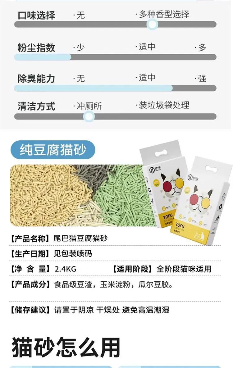 | 商品簡介 | 尾巴猫纯豆腐猫砂除臭近无尘防臭可冲厕所大袋不粘底吸水结团批发;;颜色分类:植物萃香//纯豆腐猫砂【白茶清香】高香型;尺码:【大规格升级款4.8斤】 |