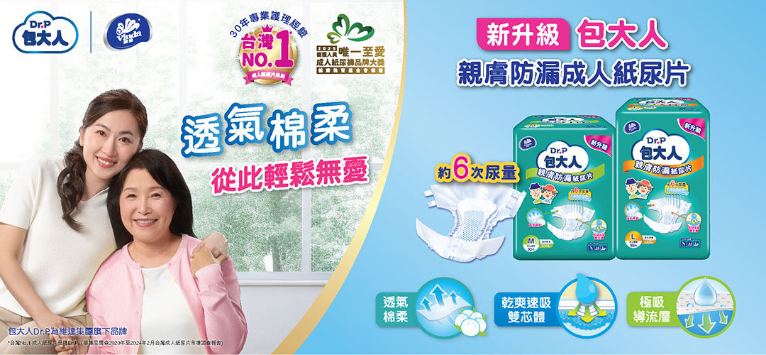 Dr. P 包大人是台灣銷量第1的紙尿片品牌, 擁有30年的護理經驗, 致力為消費者提供優質的失禁照護用品, 廣受用家喜愛及信賴。品牌的紙尿褲、紙尿片及清潔護理用品為您的摯愛家人提供全面照護,讓您從此輕鬆無憂。客戶服務熱線: 2316 2613