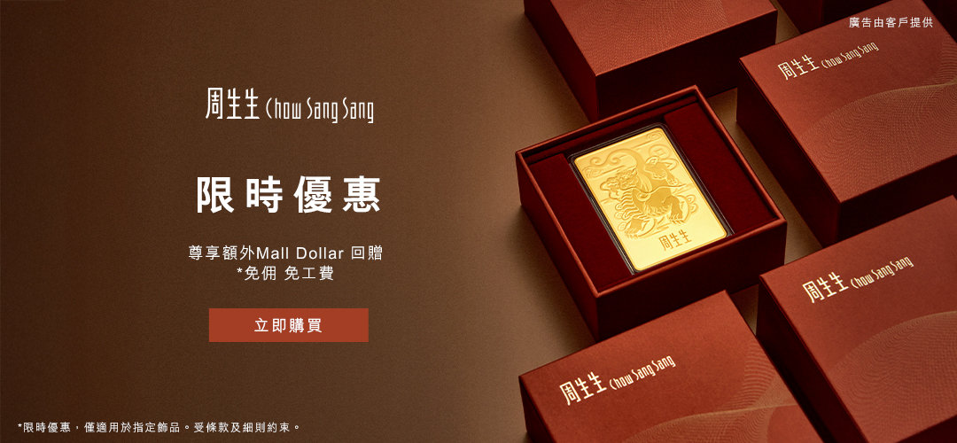 • 精選計價金飾尊享高達全單 95 折或免工費優惠,另享額外 Mall Dollar 回贈。