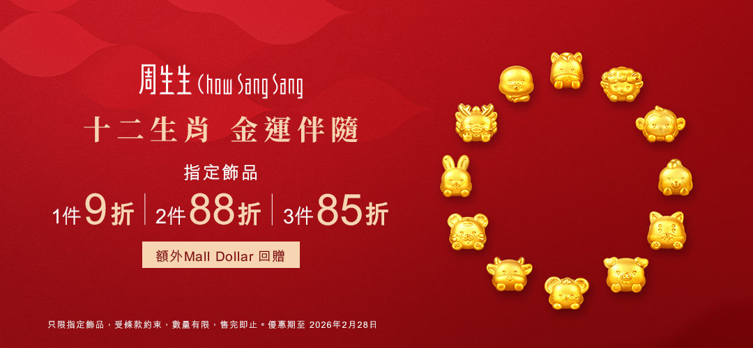 • 精選定價飾品:單件9折、2件88折,3件85折, 額外Mall Dollar 回贈
