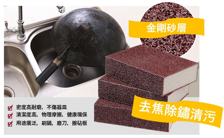 去鏽神器,廚房必備 強力去污去鏽,輕鬆去除頑固污漬 用途廣泛,刷鍋,磨刀,擦砧板 清潔度高,物理摩擦,健康環保 密度高耐磨,不傷器皿 |
