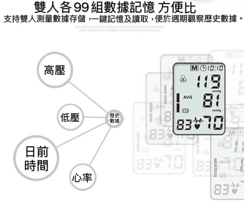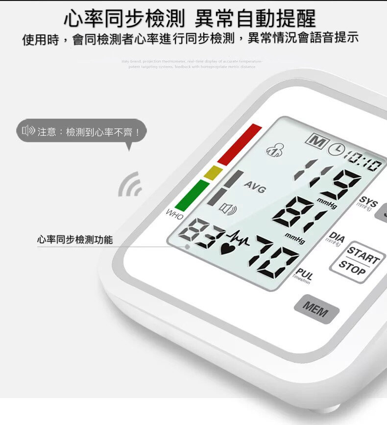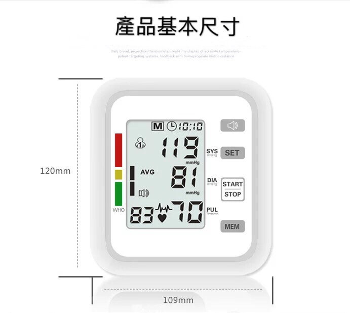 顯示方式:LCD數字顯示 測量方法:示波測定法 測量範圍:血壓:0kPa-37.3kPa(0mmHg- 心率:40次/min-195次/min 心率:讀值的±5%以內 分辨率:1次/min 充氣方式:自動充氣 快速泄氣:電子泄氣閥門 記憶功能:雙組99次記憶 自動關機:30秒無操作自動關機 機體重量:約216g 產品尺寸:120*109*53mm 電池型號:4節1.5V(4節AAA鹼性電池) |