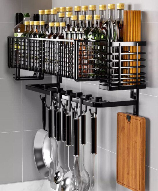 | 商品簡介 | 浴室掛架,廚房掛架,壁掛置物架【黑色55*20*22cm[筷籠+刀架+20掛鉤+安裝配件]】 |