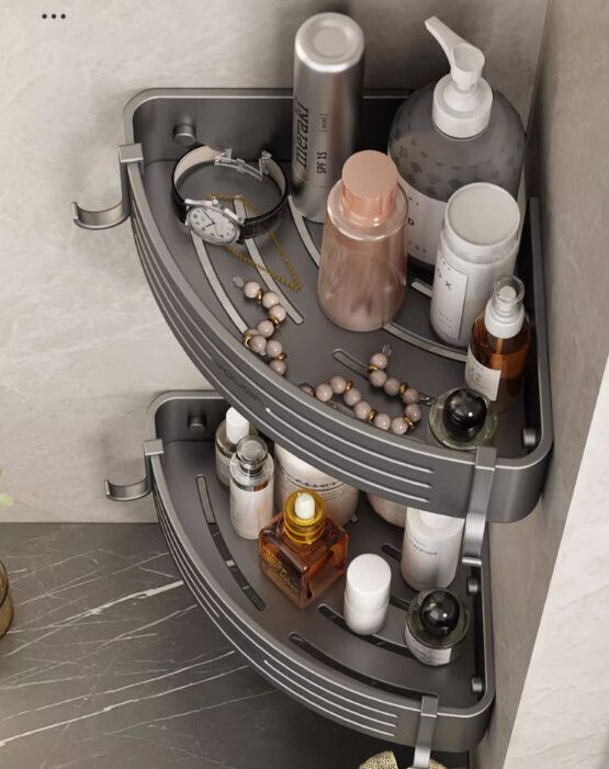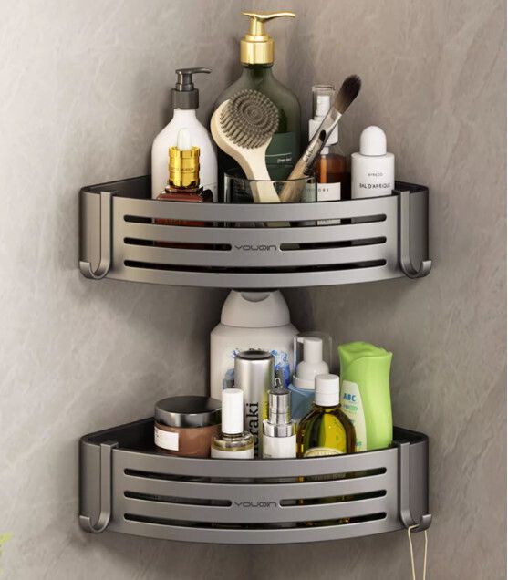 | 商品簡介 | 浴室掛架,廚房掛架,掛架【加高加厚太空鋁三層三角籃-黑色】 |