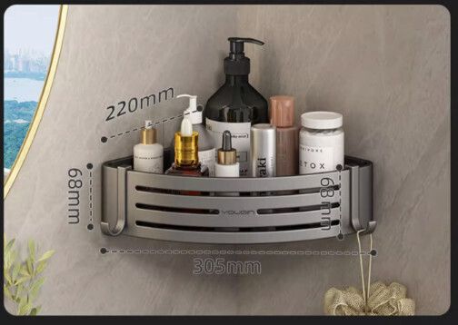 | 商品簡介 | 浴室掛架,廚房掛架,掛架【加高加厚太空鋁單層帶杆三角籃-黑色】 |